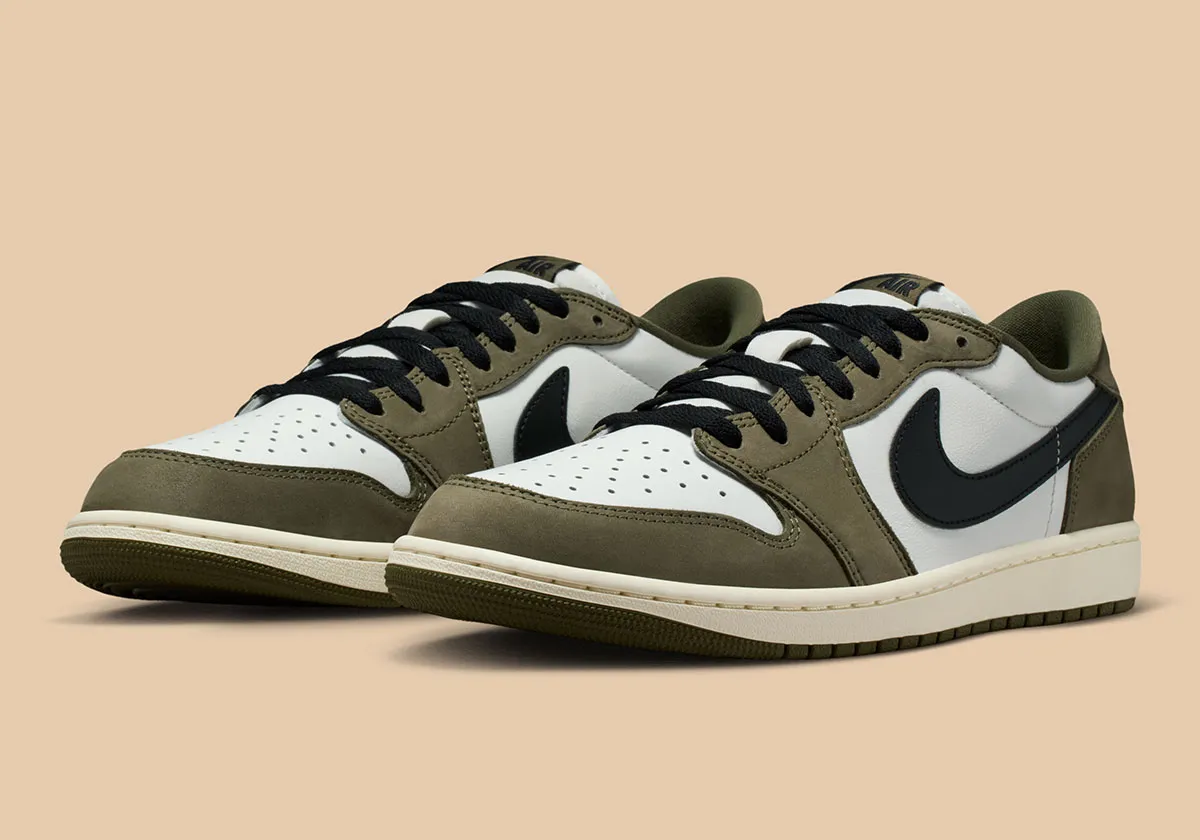 Now officially revealed and queued up on the Swoosh’s various online sites, the Air Jordan 1 Low OG “Medium Olive” marks the first bonafide Retro release of the year for the model. Potentially a lower variation on the Retro High pulled from the slate in 2024, the broad strokes from what we expected in that higher sibling remain here; earthy green overlays and white leather backing. The return of the “Big Swoosh” provides jet black interplay, and a faux-aged off-white sole unit adds some trendy flash to close. Already cited as “Travis Scott shoes” at home, there’s no denying the potential runoff effect that La Flame’s catalog has on this shoe, joining “close but no cigar” releases like the Air Jordan 1 “Mocha.”