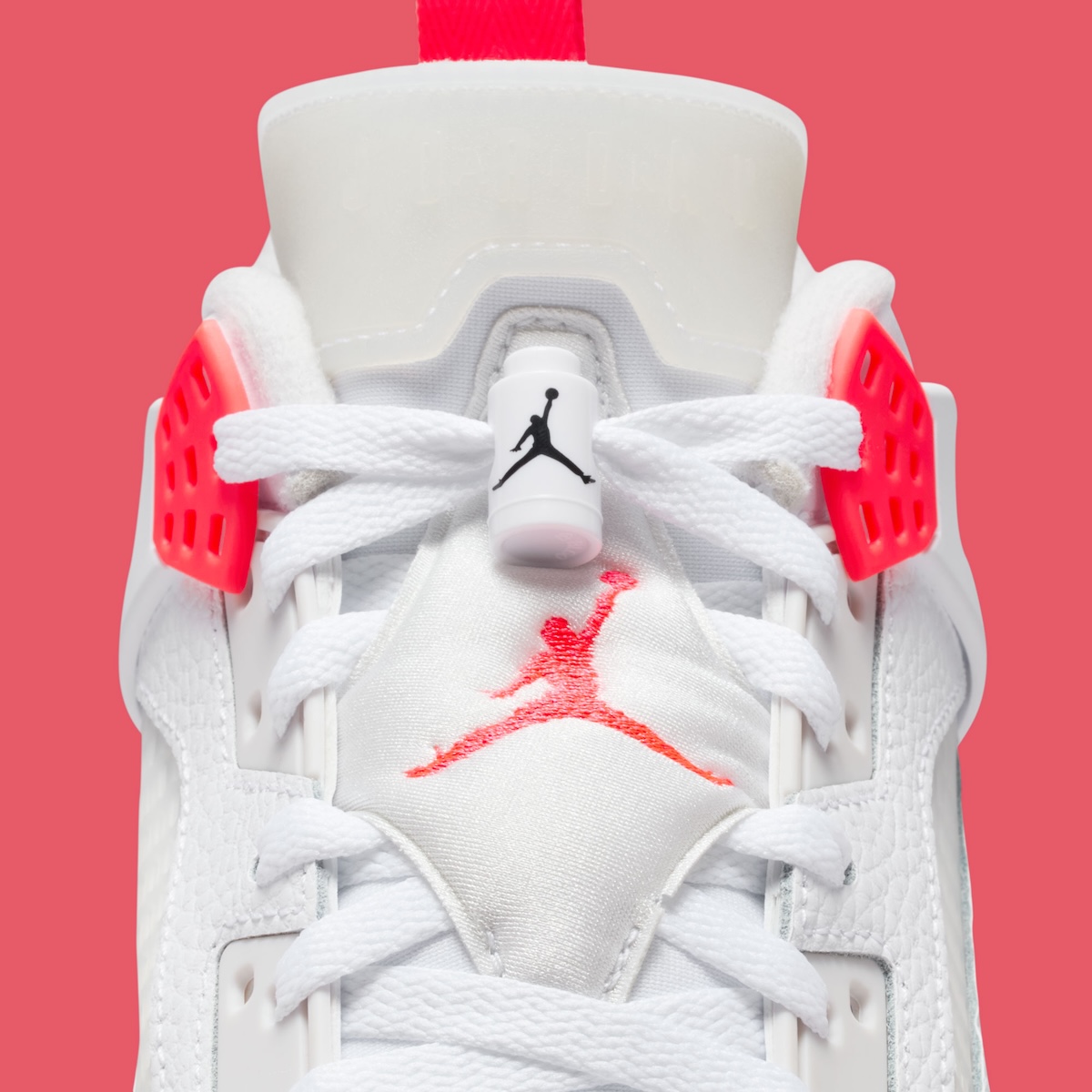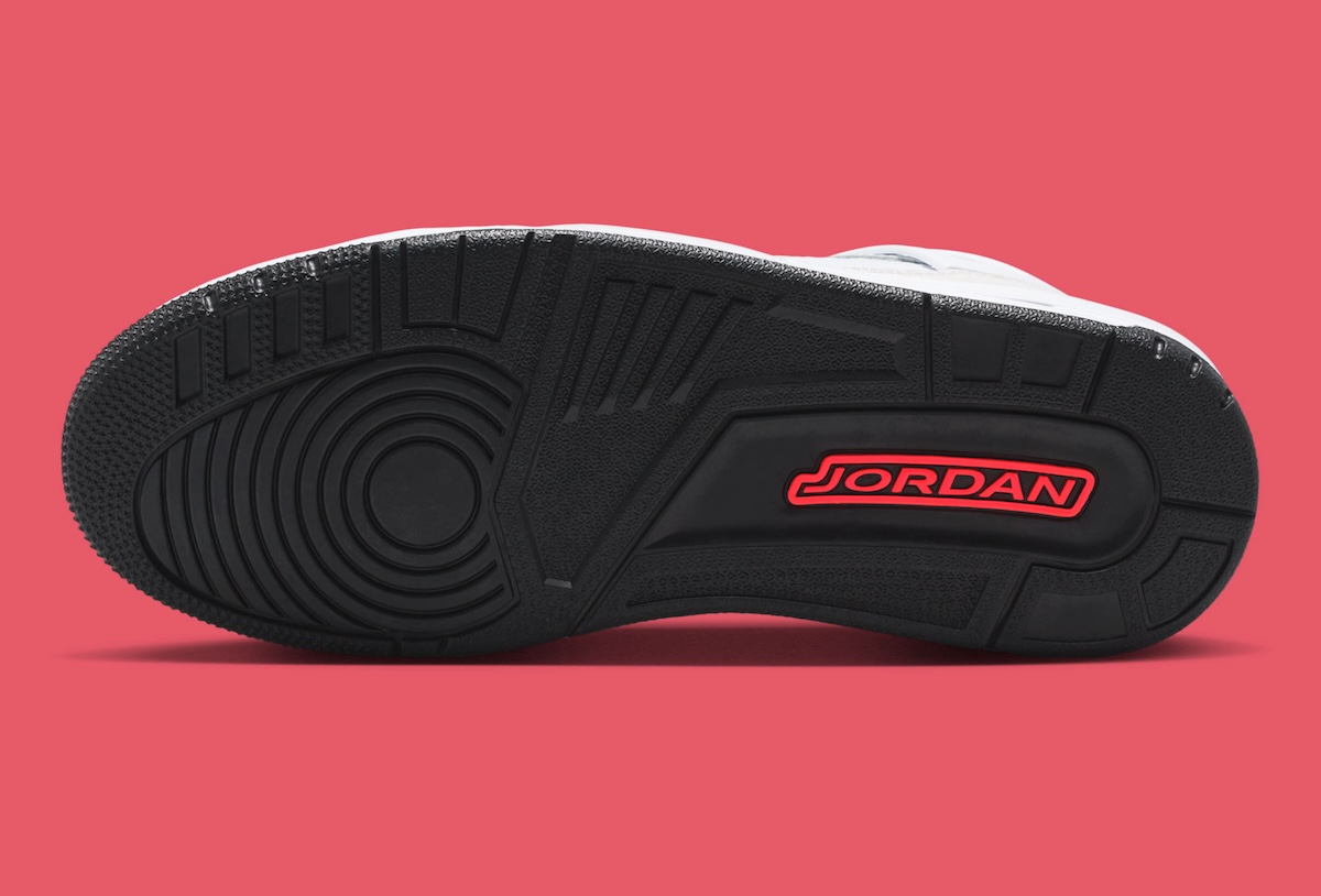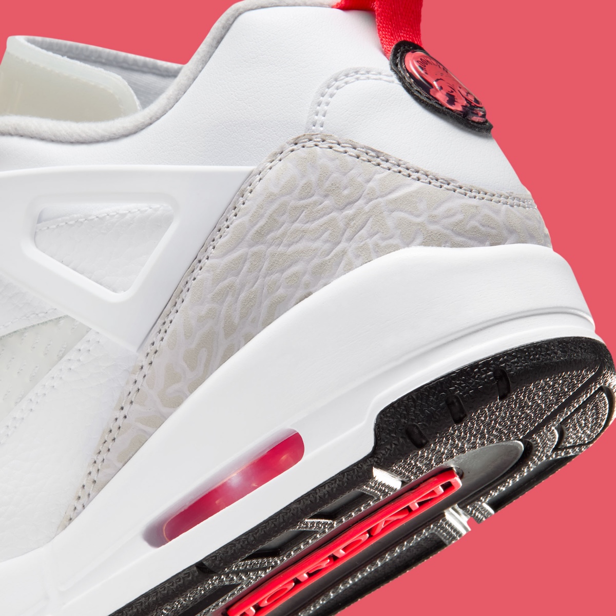 Bright Crimson adds life where it matters most. The lace wings, heel pull tabs, and Jumpman logos keep the energy tight and controlled. Black at the outsole and heel badge grounds the design. Compared to older Jordan hybrid sneakers, this pair chooses balance over flash.