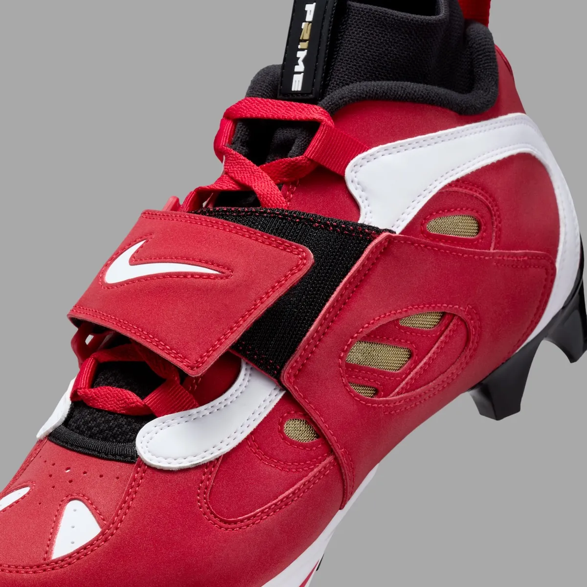 Nike loves to revisit its football heritage, and that approach returns with the Nike Air Diamond Turf 2 TD Cleat “Prime Red”, a design that carries the legacy of Deion Sanders straight onto modern turf. The familiar cross-trainer shape translates cleanly to game-ready form, blending history with present-day performance.