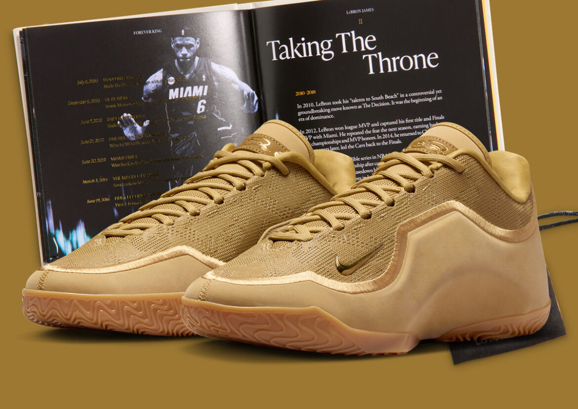 This pair is inspired by the iconic “Wheat” Air Zoom Generation and LeBron James’ first MVP season in 2009. Official images reveal a Wheat Gold, Gum Medium Brown, Magic Ember, and Wolf Grey colorway that mirrors the warmth and prestige of that original classic. The storytelling feels intentional rather than decorative.
