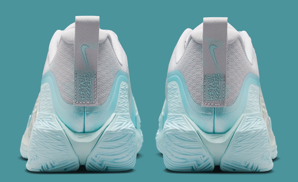 Glacier Blue takes control of the midsole and translucent panels, adding a frosted edge that feels almost architectural. The sculpted forms carry motion through the shoe without relying on color blocking alone.
