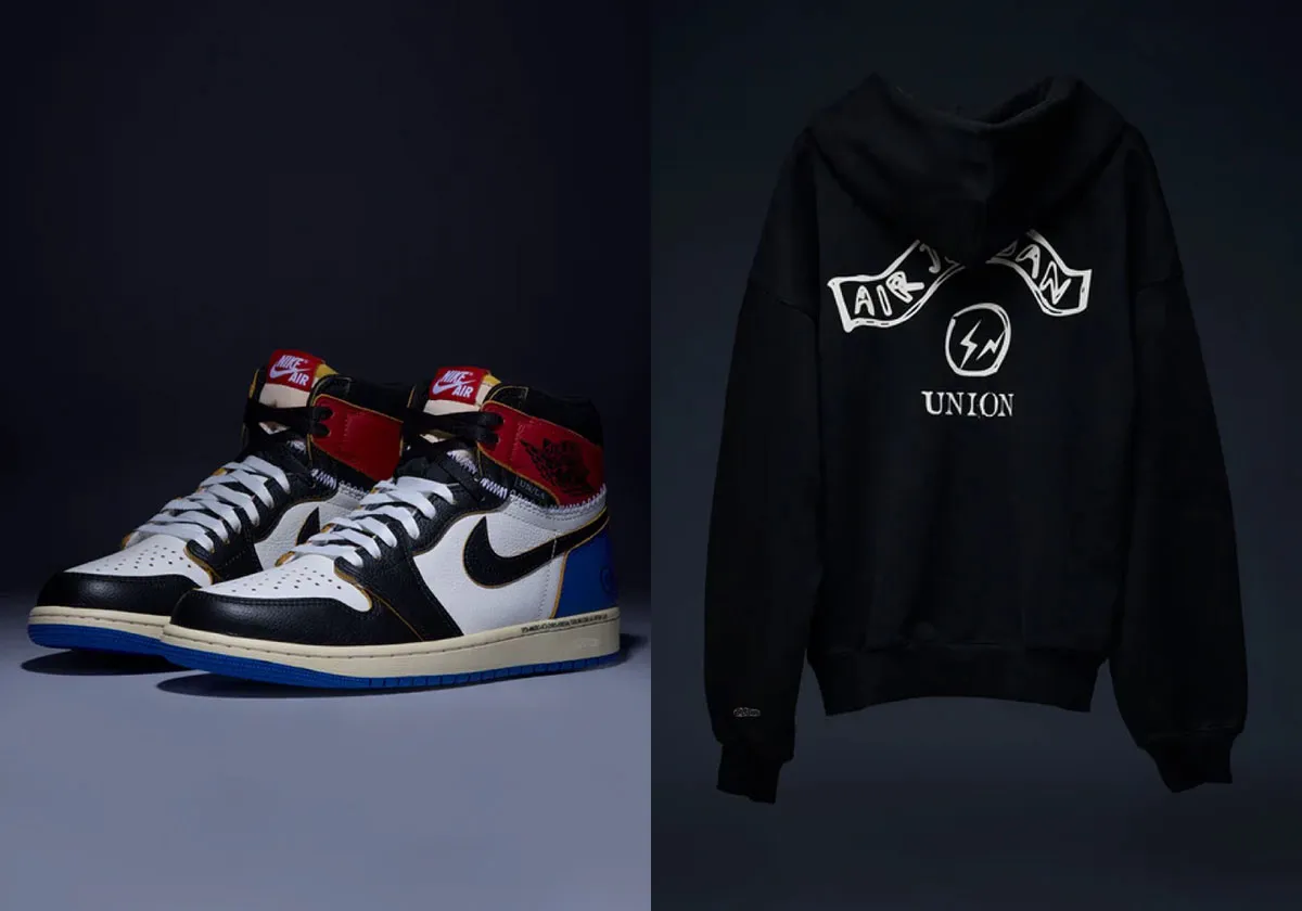 Here we have the Fragment UNION Jordan 1 in “Black/White/Varsity Red/Sport Royal,” consisting of a “Black/Varsity Red” collar and Fragment’s legendary 2014 collab underneath. This is one of three styles set to release, joined by far more limited “Black/Navy/Royal/Sail” and “White/Black” options (potentially Fragment exclusives). The gallery below also includes co-branded apparel, including a tee, thermal long sleeve, zip hoodie, and mesh shirt and shorts set.