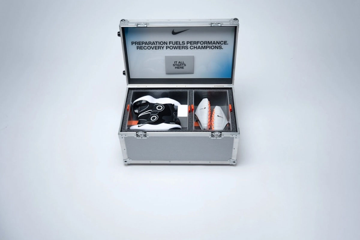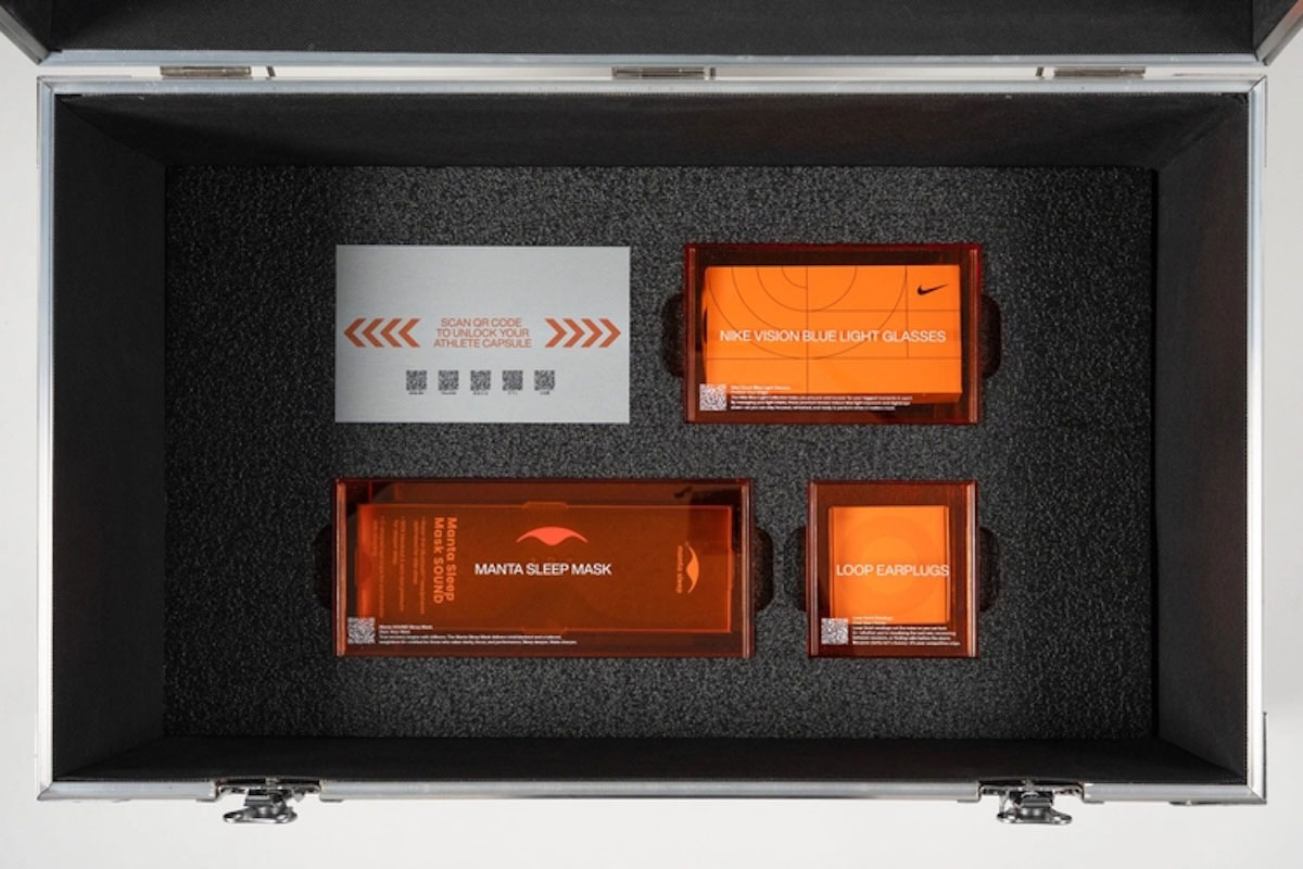 At the center of it is Nike’s Performance Capsule, a system shaped directly by athlete feedback. It targets mental clarity, recovery, and the strain that comes with global travel. The headline piece is Mind 001, Nike’s first footwear rooted in neuroscience, built to help athletes reset and lock in before and after competition. Supporting it are recovery essentials like the Nike x Hyperice Hyperboot, Timeshifter Concierge for travel adjustment, and sleep-focused tools including blue light glasses, sound masks, and quiet earplugs.