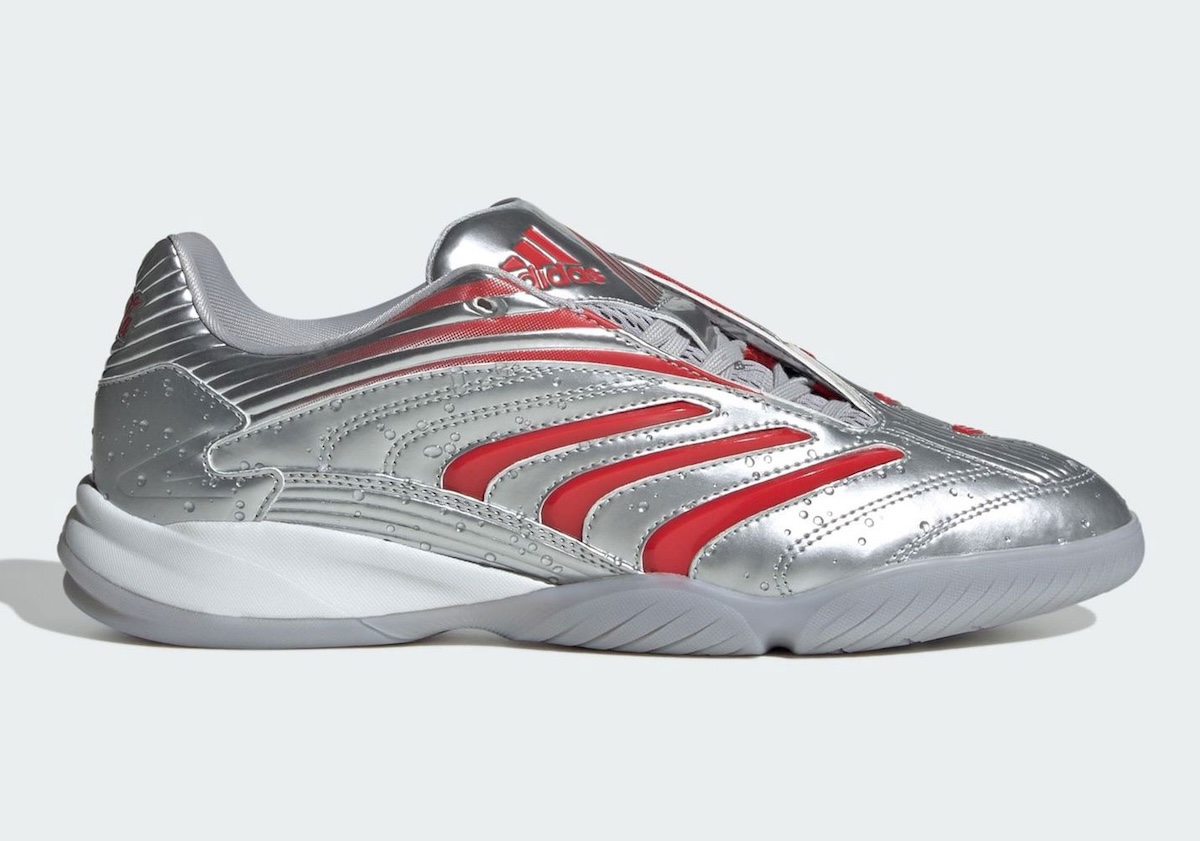 Then things shift toward performance. The Megaride F50+ Spider and Predator Sala bring football energy into the capsule with silver and red accents. Their presence quietly connects the drop back to adidas’ sports roots.