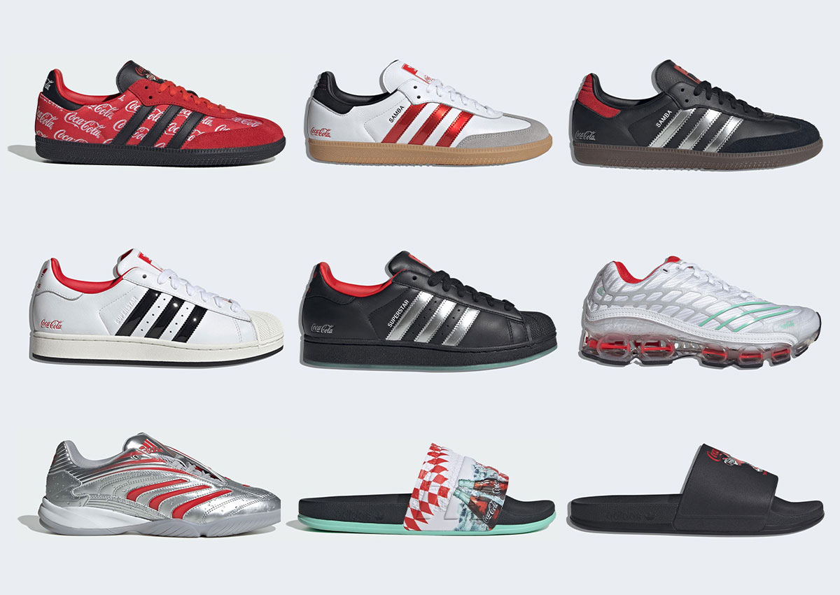 The collection itself features staple sneakers refreshed with bold color palettes, playful accents, and an obvious dedication to each other sharing the title spotlight. Coca-Cola and adidas have no problem telling you who you’re wearing your shoes from.