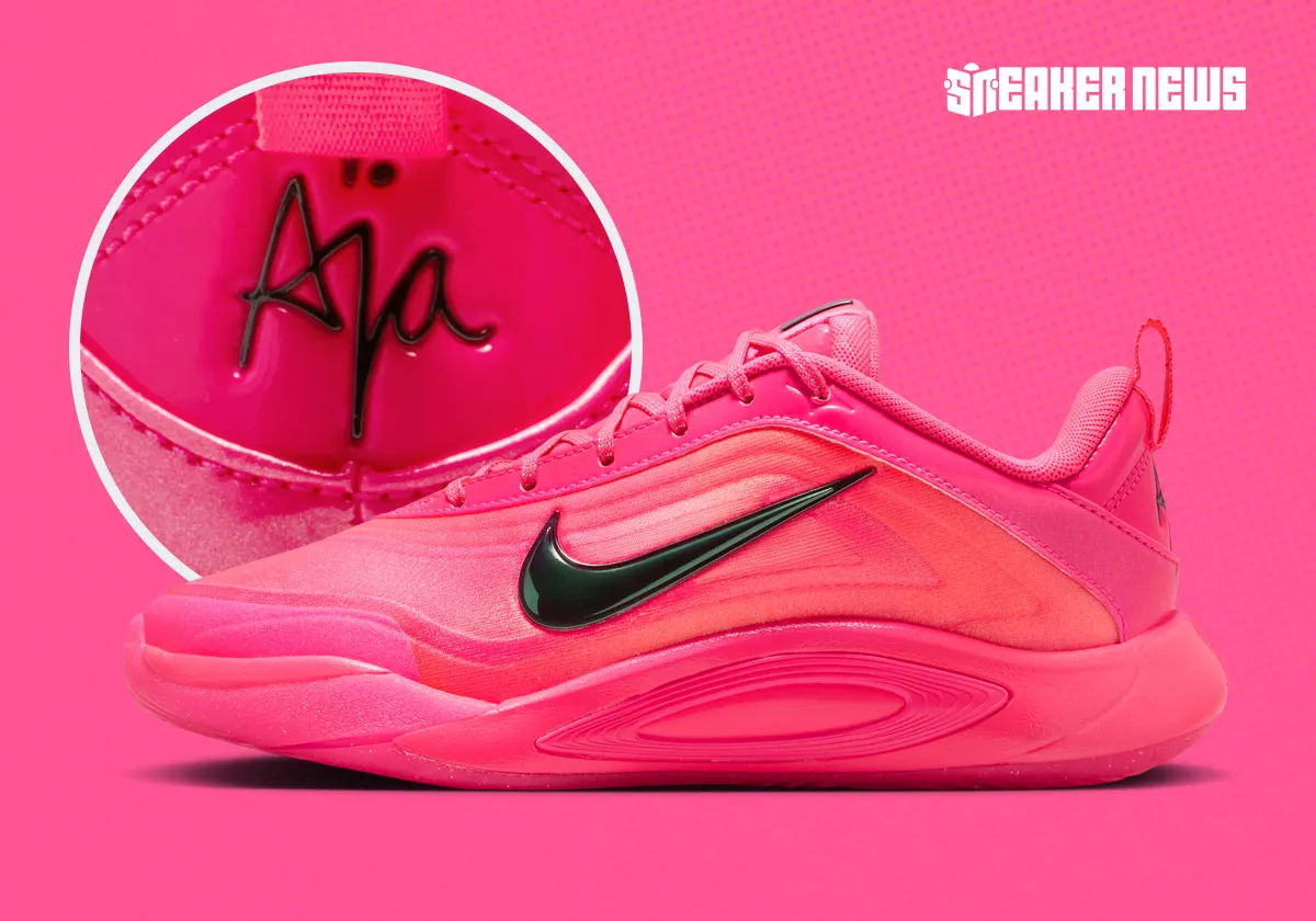 Given Wilson’s penchant for pink, it’s no shock that we’ve seen her debut silhouette take on rosy tones so frequently, again the case as a “Hyper Pink” edition comes to light. Where this one sets itself apart from the pack is in glittery finishes and glossy materiality, the former most effective running underneath the Swoosh and the later most visible down the laces and on the heel. Utilizing staid black on the Swoosh and heel Aja branding keeps things in grounded territory, but we won’t kid ourselves; this are made for making a statement all the same.