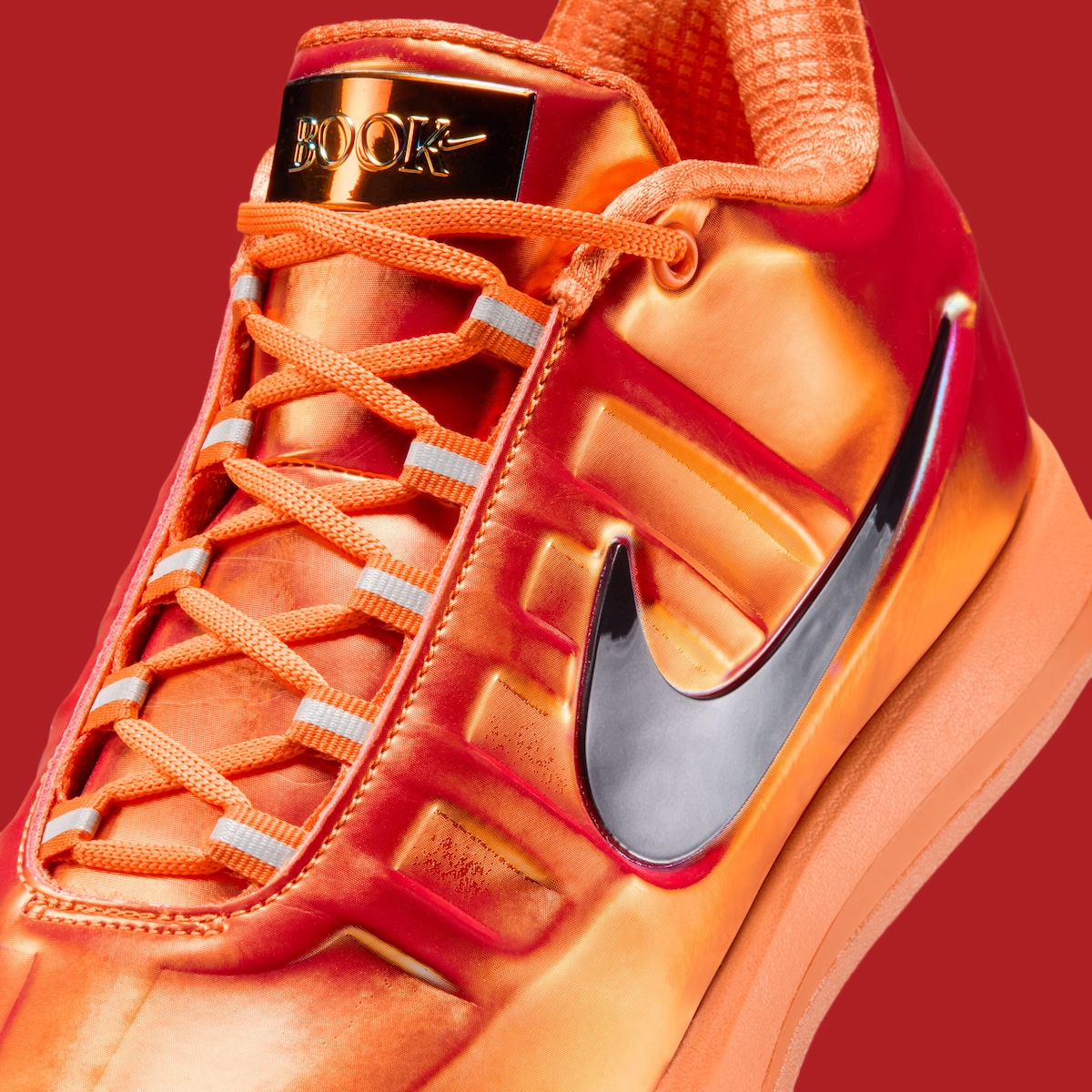 All-Star Weekend continues to push Nike Basketball toward bolder storytelling, and this LX edition of the Book 2 leans fully into that stage. A glossy, color-shifting upper moves between deep orange and red.