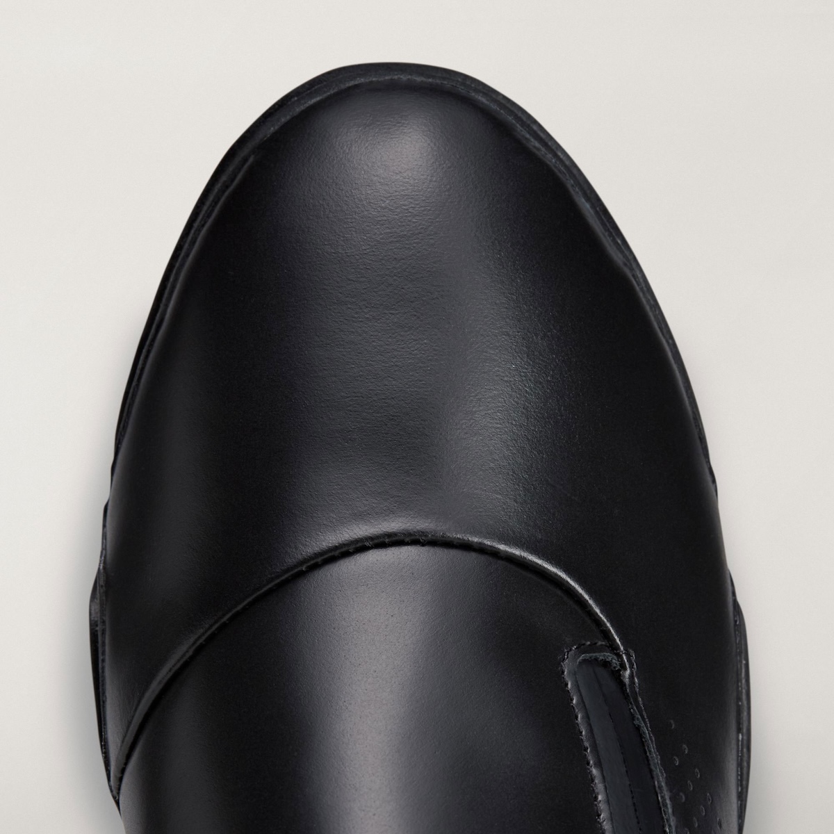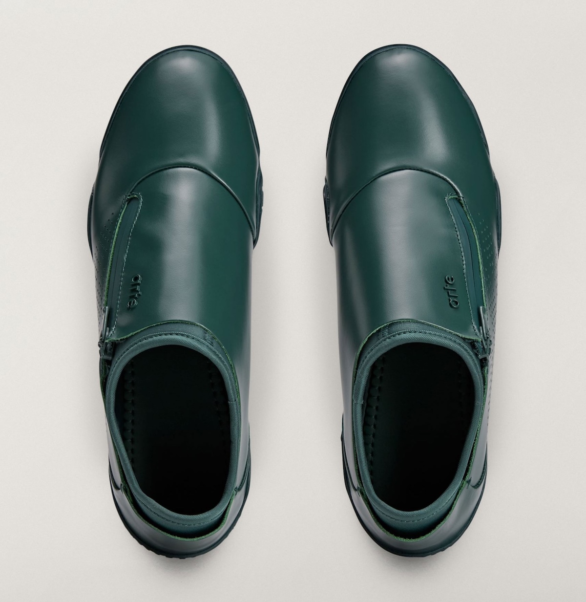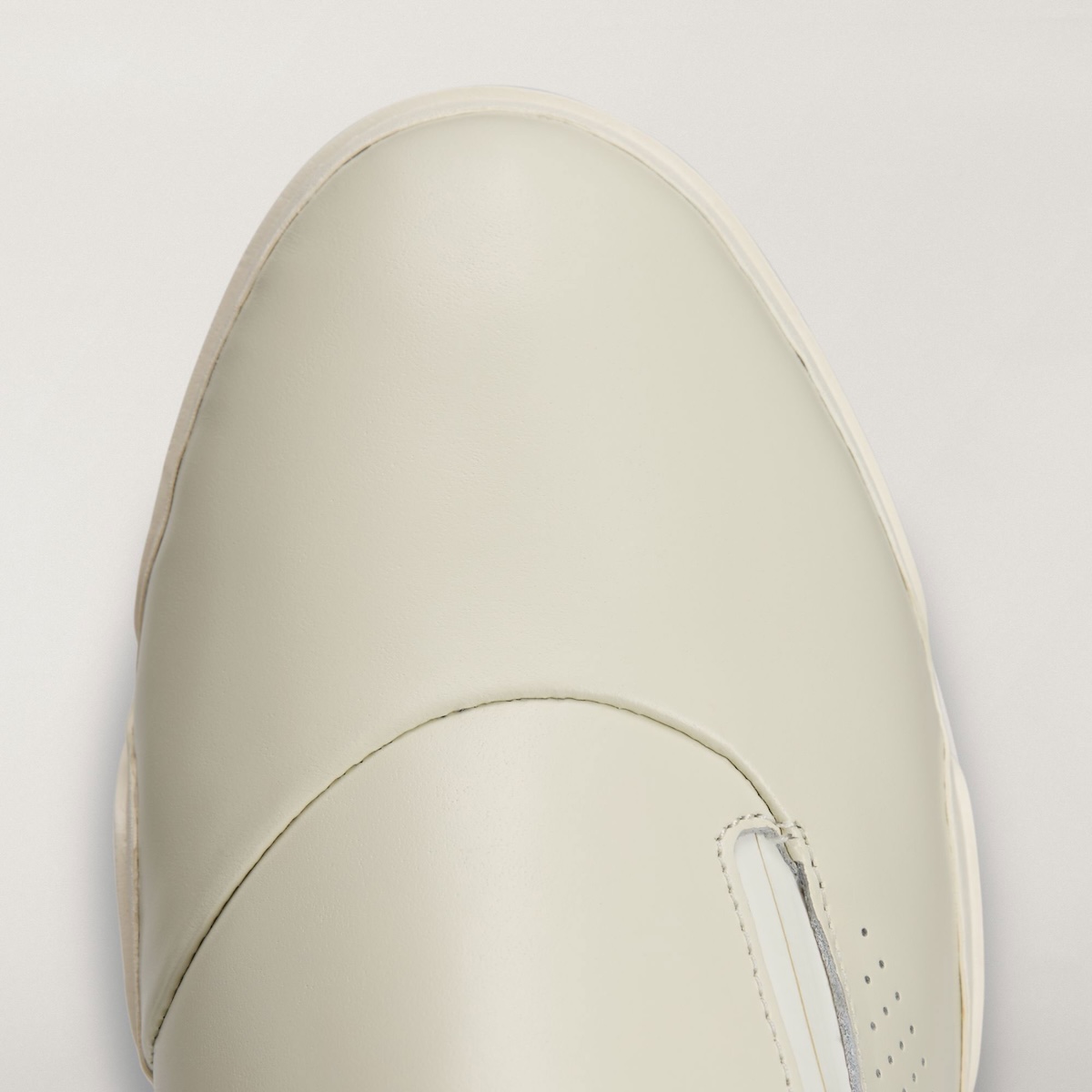 On top, suede jackets smooth out the upper without feeling overly slick. Centered along the interior panel, a zip adds ease of entry and provides a strong graphic element. The collar extends up higher around the ankle and flairs inward, gripping closer to the foot like a sock. Small holes are then punched along the midfoot for texture and contrast, while a piece of suede running down the shank mitigates some of the gloss.