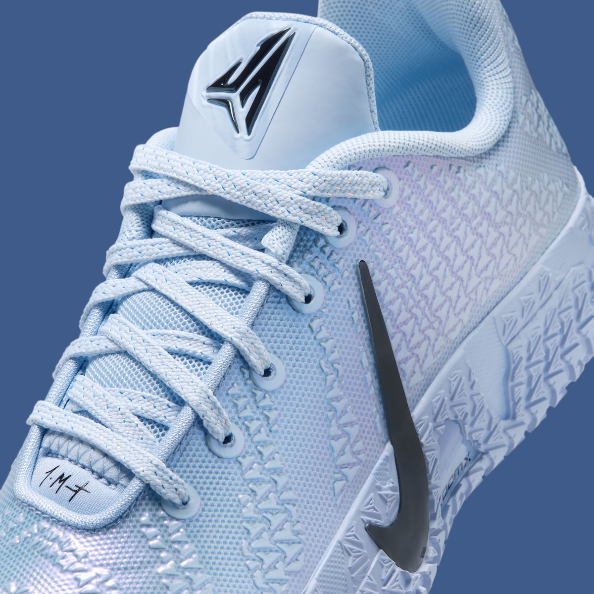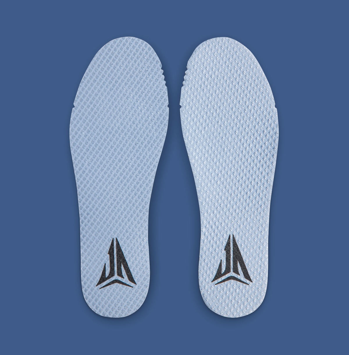 The “Cobalt Bliss” Ja 3 keeps its foundation simple but layered. A breathable mesh base is wrapped in a molded, triangular texture that moves from toe to heel. The pattern adds depth without cluttering the design, while a bold black Swoosh slices cleanly along the lateral side.