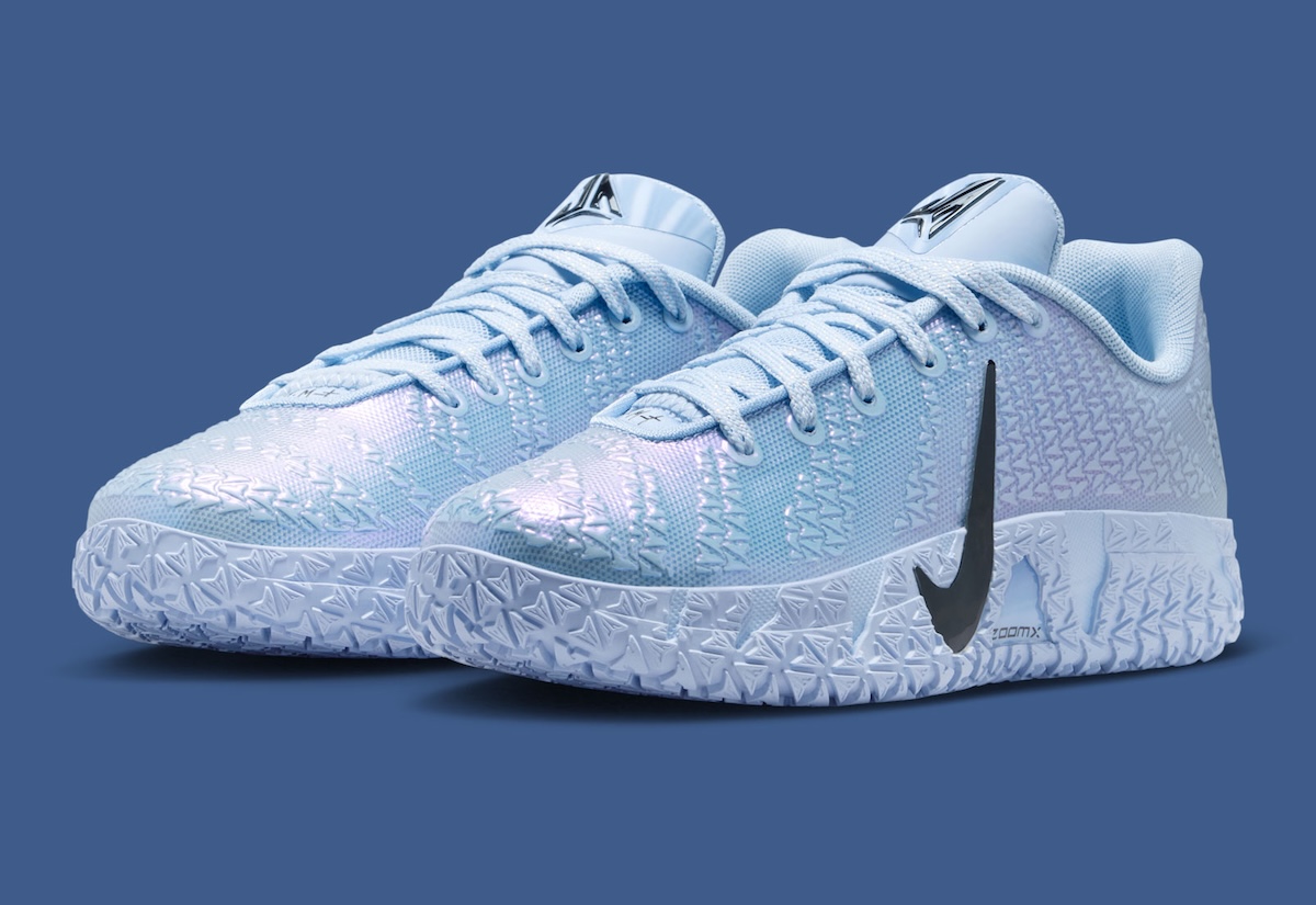 Cold gym lights reflect off fresh court lines, and that same glow appears on the latest youth drop tied to Ja Morant’s line. The blue reads calm at first glance but sharp in motion, more controlled than loud. Small details carry the energy, from the reflective laces to the light shimmer across the upper.