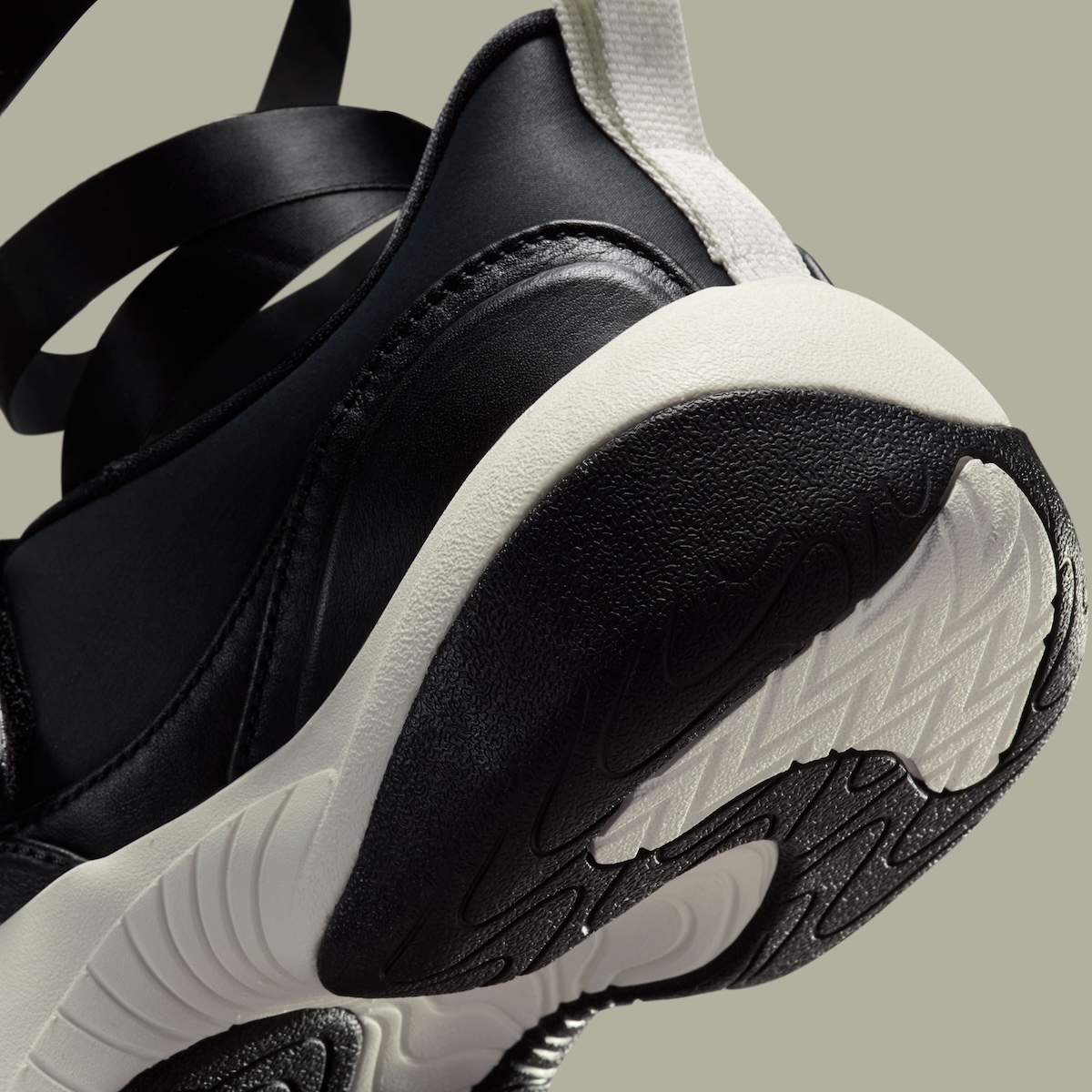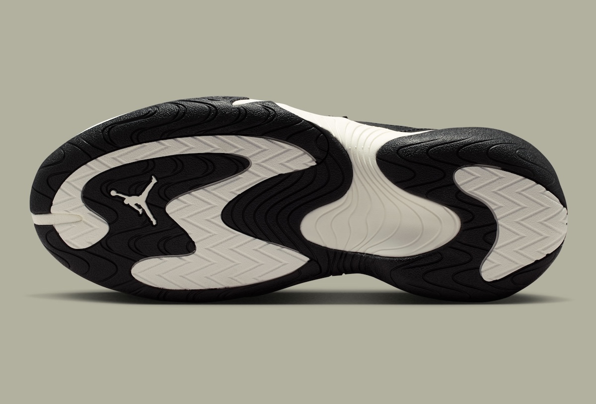 The detail down low speaks volumes in contrast. Sculpted in Sail, the midsole bends through the midfoot with swooping organic curves. A black rubber outsole features wavy traction patterns and a recessed white Jumpman logo. Cream color accents a pull tab at the heel to help break up the collar and the rounded rear quarters keep the model feeling low to the ground.