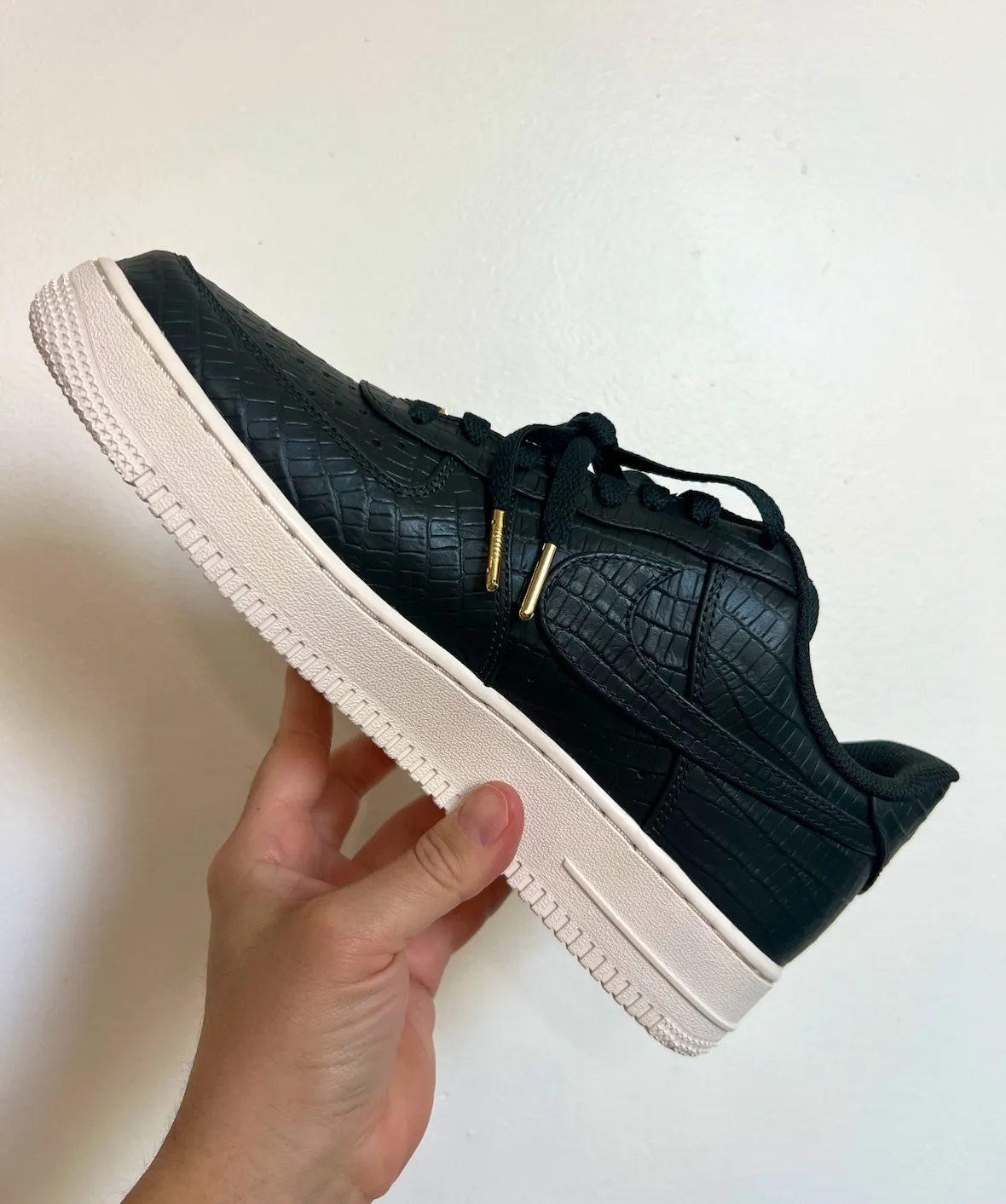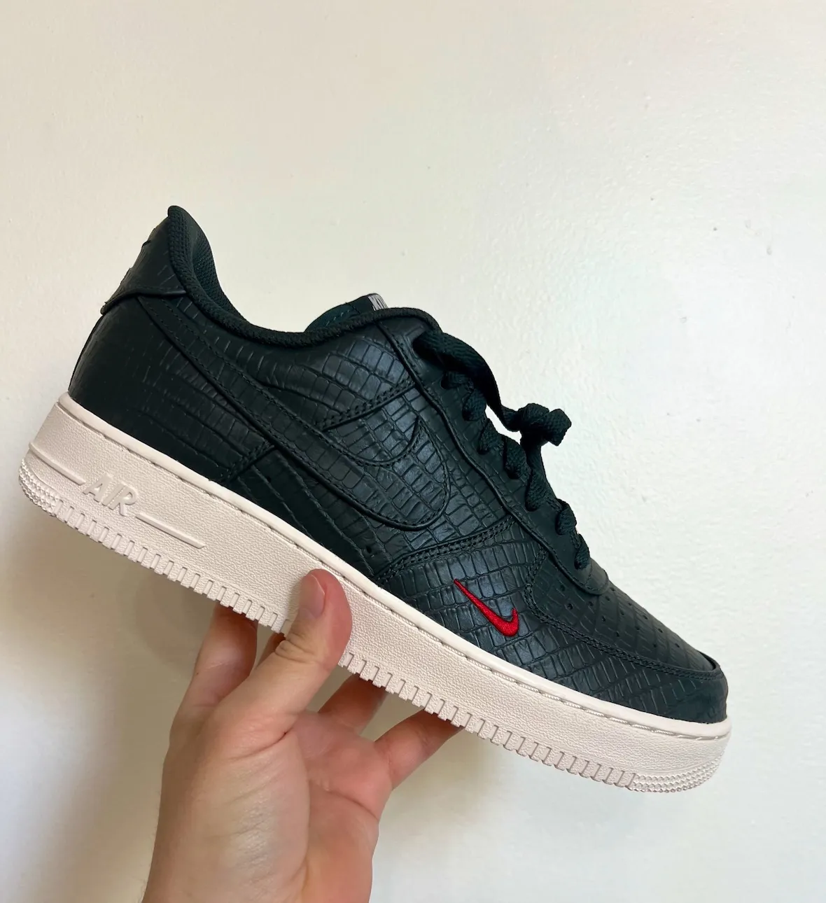 Tucked inside was the KITH x Nike Air Force 1 Low “Black Spruce,” a Friends & Family iteration wrapped in dark, croc-embossed leather with a clean sail midsole and a small red Swoosh accent. The premium texture, restrained color blocking, and subtle Kith detailing make this release feel more like a crafted keepsake than a typical promo sample. It also quietly signals how Kith has leaned further into elevated materials as a point of distinction rather than loud branding.