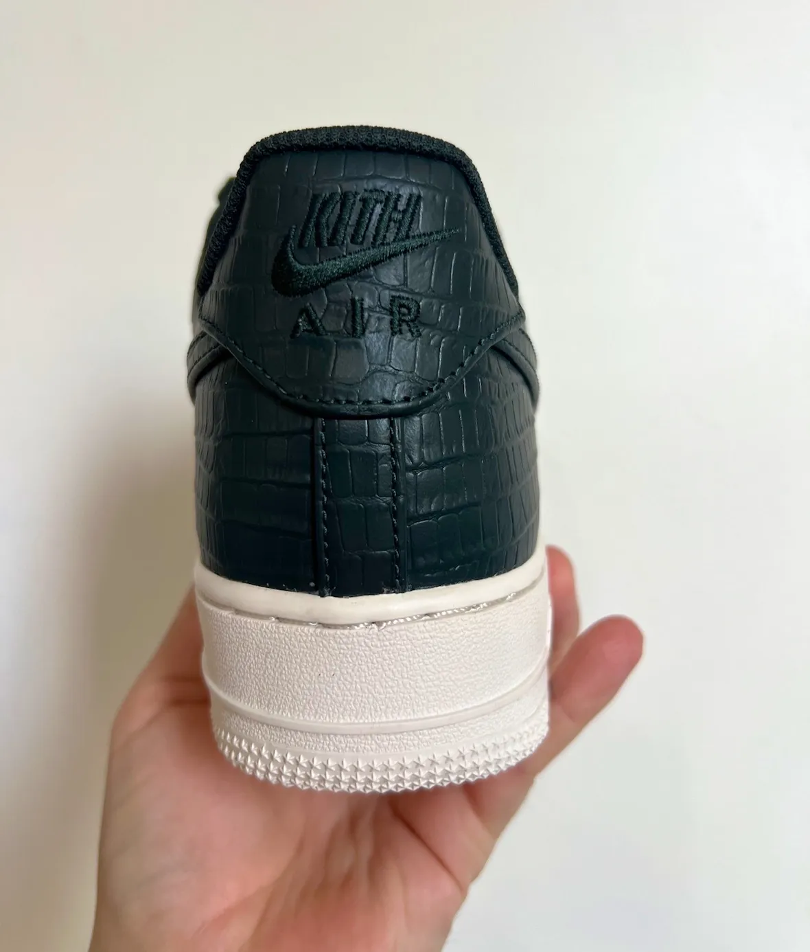 The KITH x Nike Air Force 1 Low “Black Spruce” remains Friends & Family only with no public release, available solely through Kith’s F&F allocations.