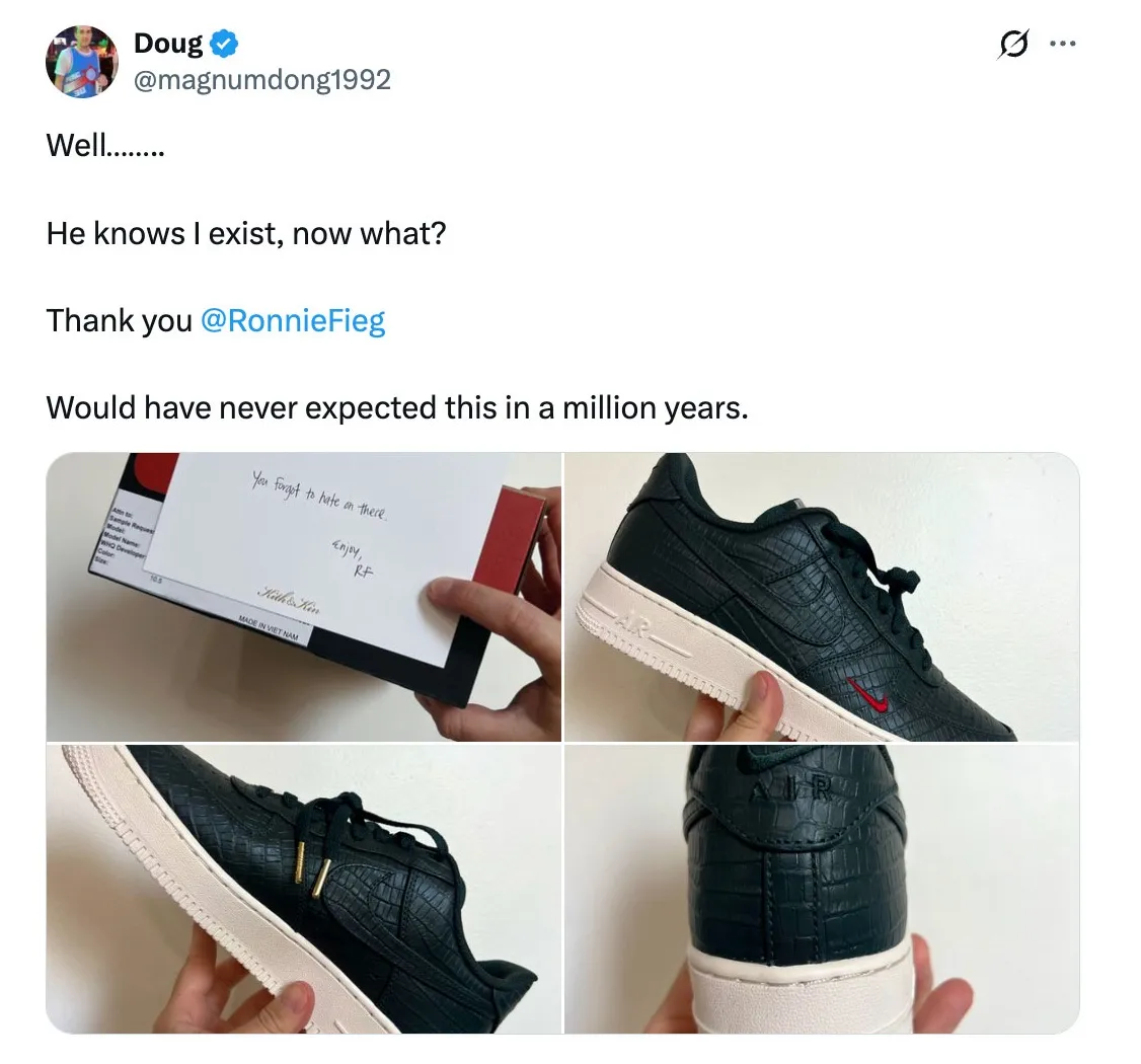 On a corner of Sneaker Twitter where jokes usually travel faster than compliments, a quiet box arriving at someone’s doorstep changed the tone of the conversation. Ronnie Fieg didn’t clap back, subtweet, or score points—he simply shipped a pair, letting the gesture do the talking. That move reframed a long-running back-and-forth into something closer to an olive branch than a mic drop.