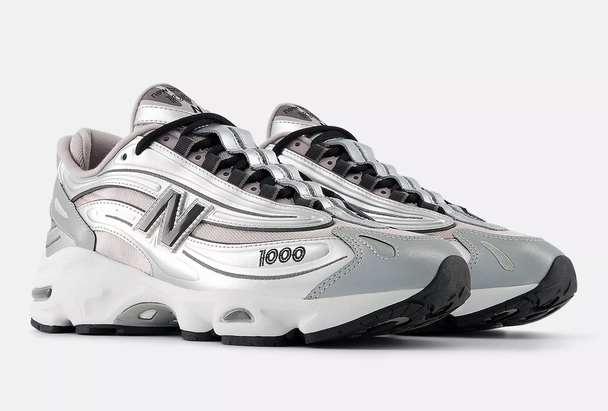 Neon reflections and late-night city glare feel built into this drop before you even clock the details. The New Balance 1000 “Truffle Salt” leans into that turn-of-the-millennium energy with a cool Silver Metallic finish that catches light in different ways. It reads sharp at first glance, but layered when you slow down.