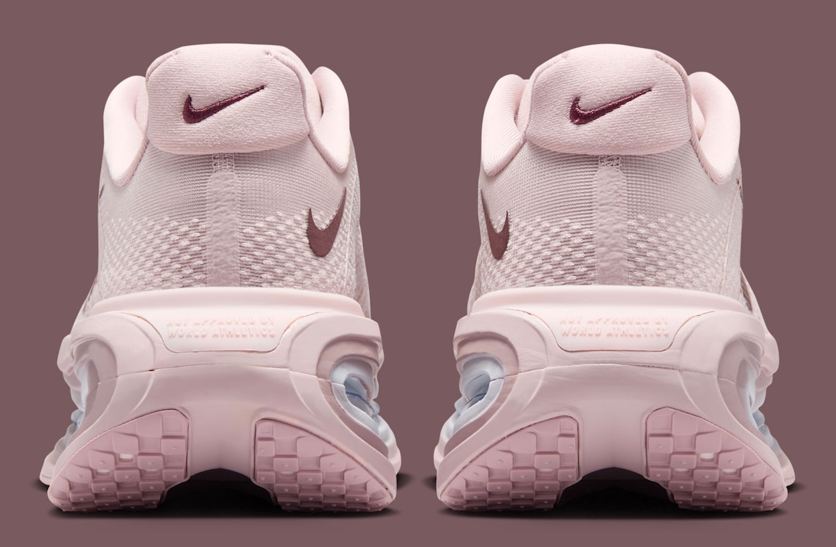 The upper combines a lightweight Particle Rose knit with a subtle marled appearance. Smooth molded overlays cover the eyestays and midfoot to help maintain structure without sacrificing fluidity. On the lateral, a Burgundy Crush Swoosh is overlapped by a muted translucent stripe. A tonal tongue and collar are rounded out by matching laces.