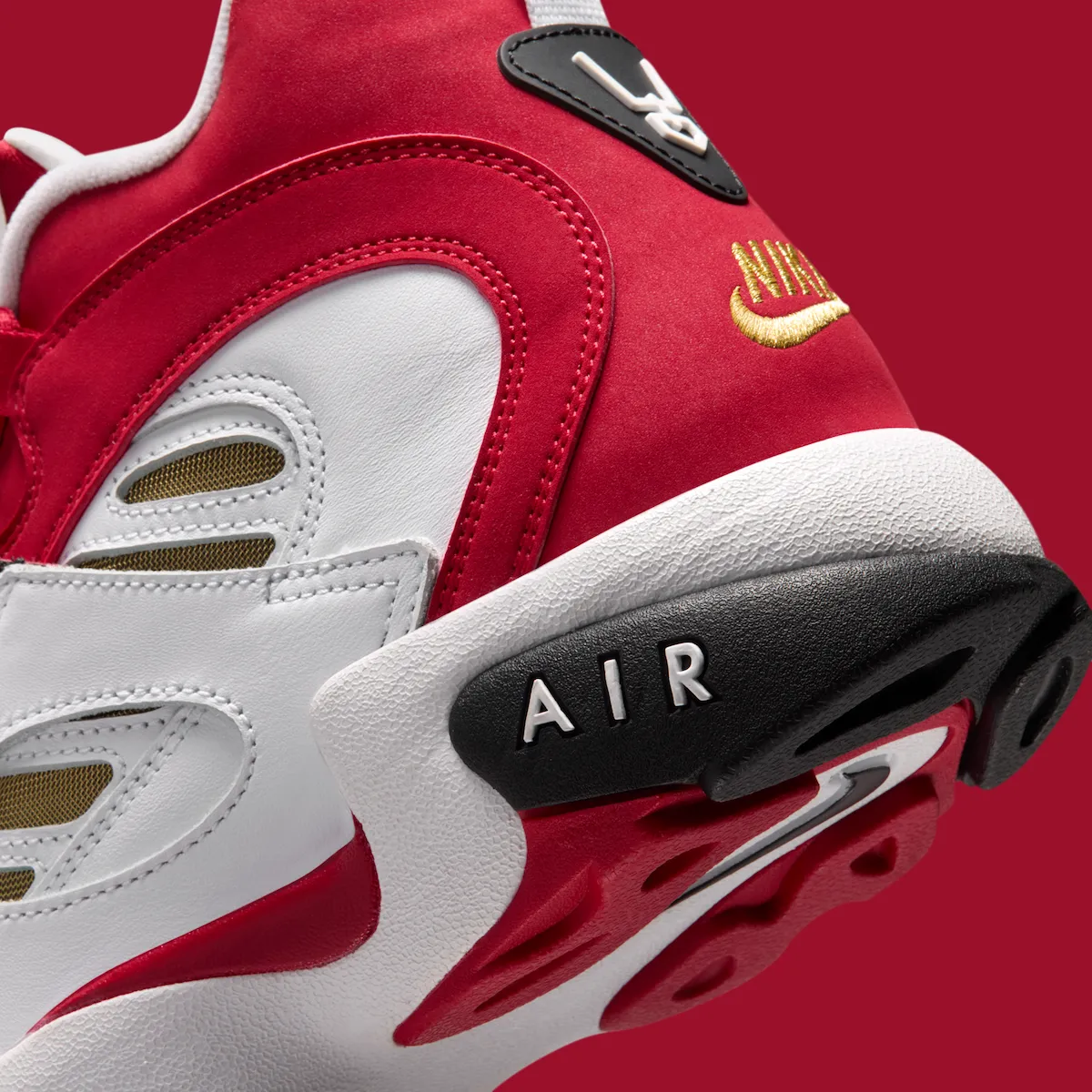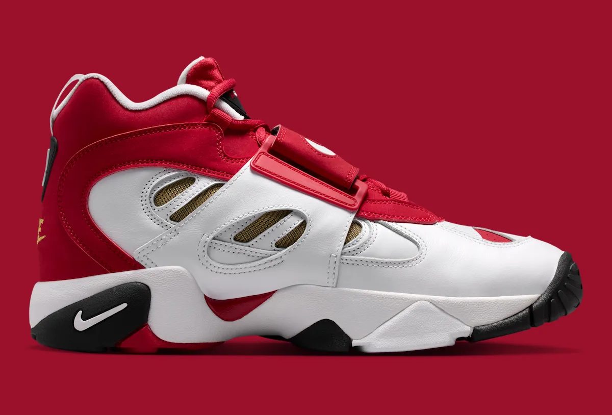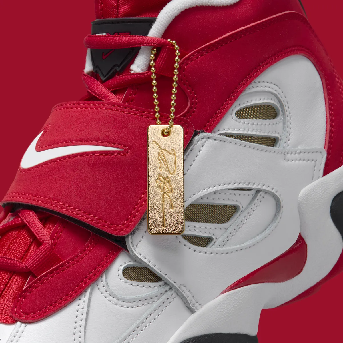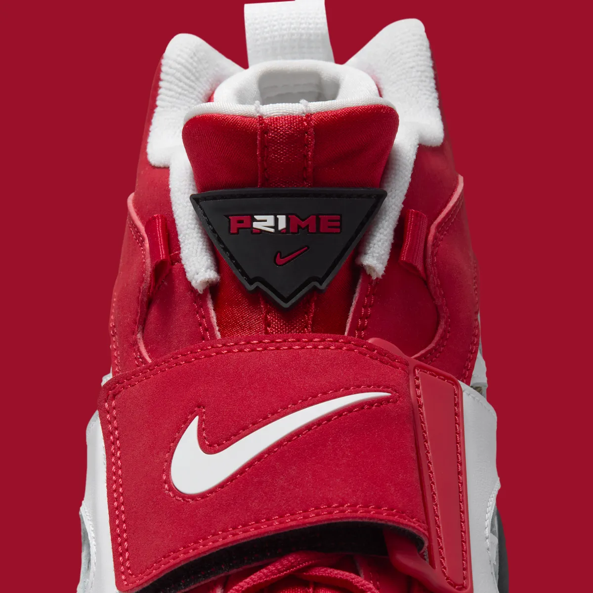 Red, white, and black define the look, but the “Reverse” concept flips familiar blocking into a sharper, more contrasted execution. The midfoot strap, sculpted overlays, and visible Air unit remain intact, while cleaner leather panels and a crisper color split give the silhouette a subtly more refined presence. A gold Prime Closet hangtag ties the pair directly to the San Francisco activation and Sanders’ broader archive.