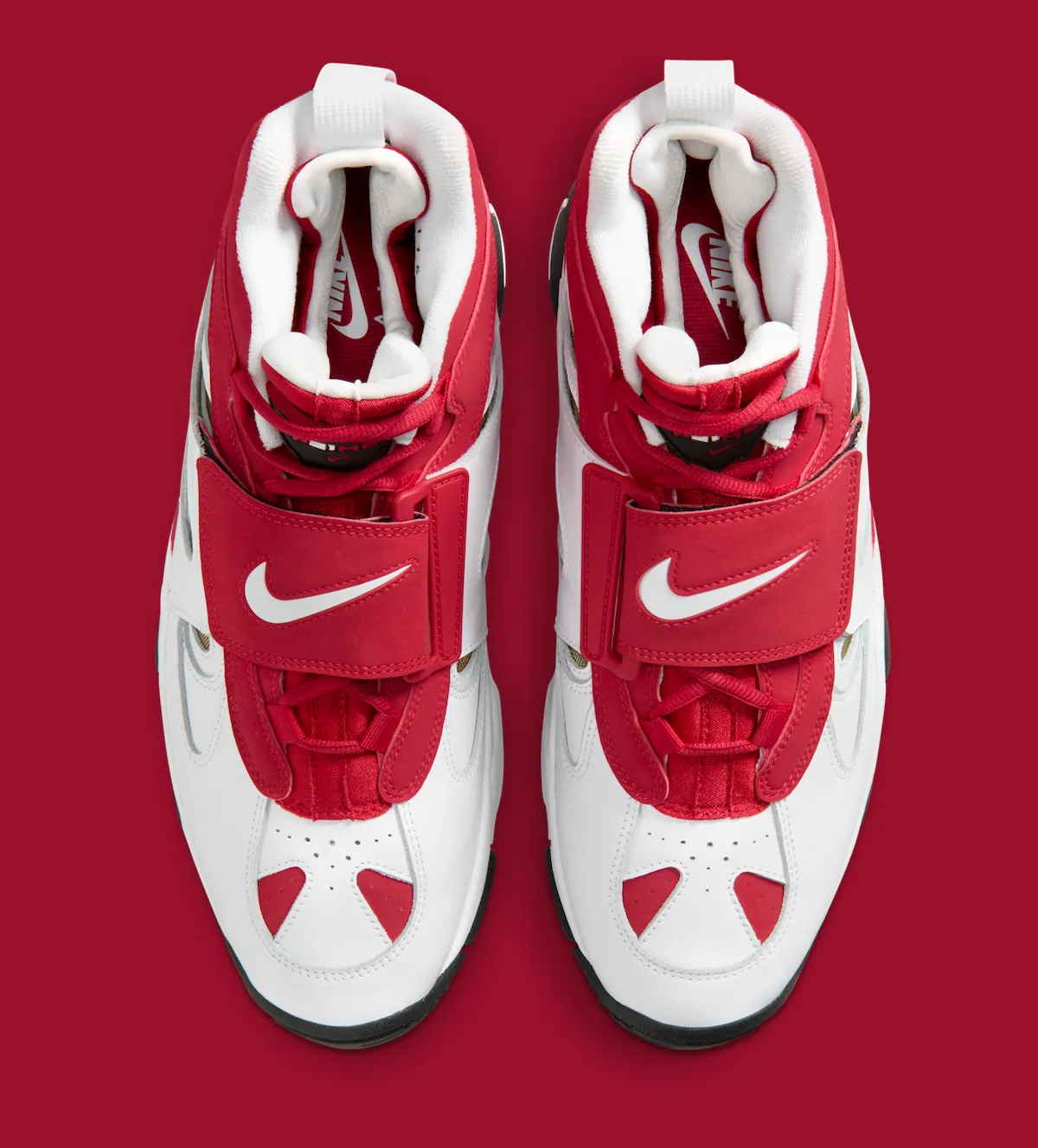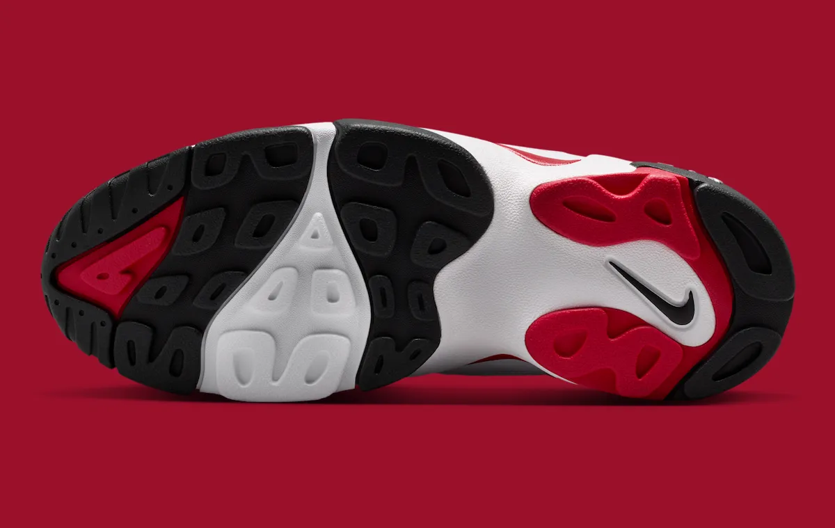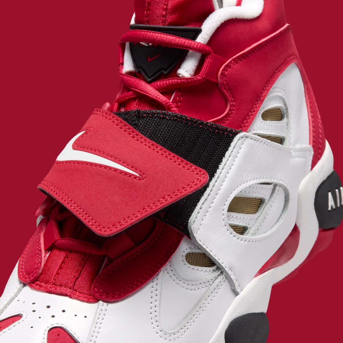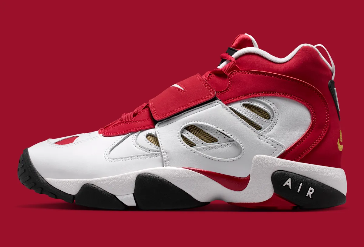 Red, white, and black define the look, but the “Reverse” concept flips familiar blocking into a sharper, more contrasted execution. The midfoot strap, sculpted overlays, and visible Air unit remain intact, while cleaner leather panels and a crisper color split give the silhouette a subtly more refined presence. A gold Prime Closet hangtag ties the pair directly to the San Francisco activation and Sanders’ broader archive.