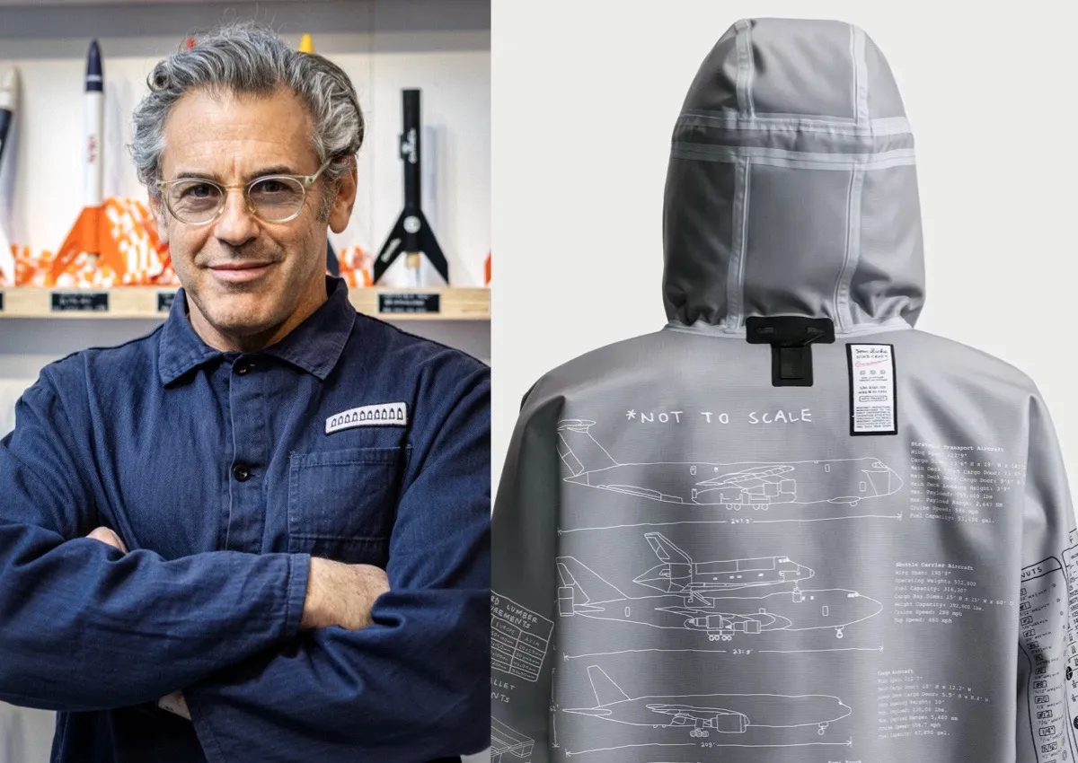 Rooted in the ISRU (in-situ resource utilization) concept, the collection leans heavily into utility and outdoor readiness. Pieces are designed with purpose, blending technical materials with adaptable features. Standouts include a packable ripstop poncho that flips to reveal blueprint-style graphics, along with a matching hooded jacket that carries similar visual language and functional detailing.