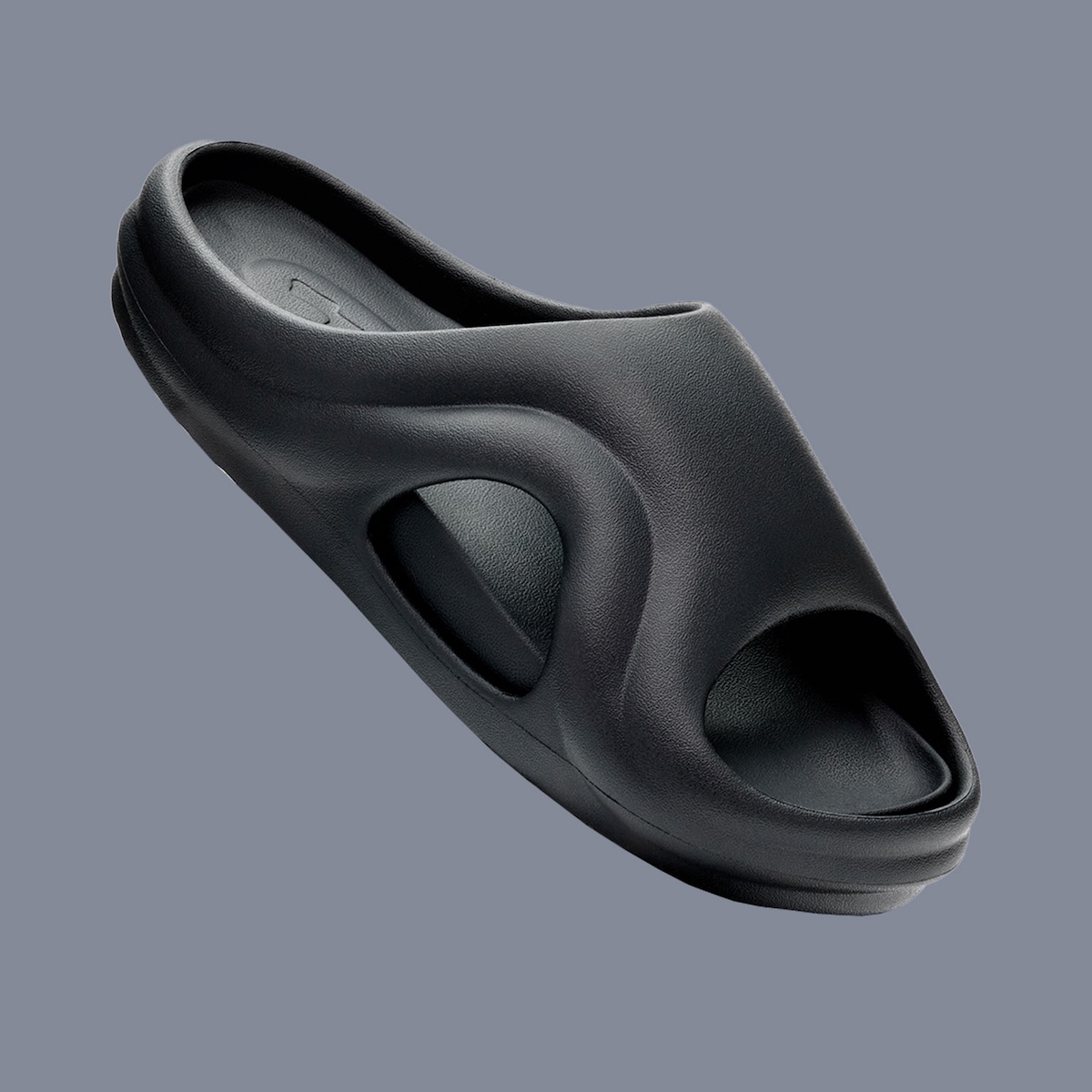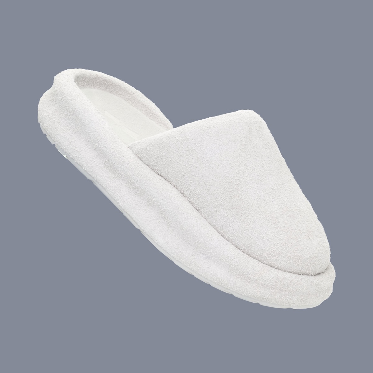 Footwear plays a key role here, with two versions each of the Rest Slipper and Beach Slide anchoring the release. The slipper leans into texture through hairy suede construction, offered in black and light grey, while the slide keeps things pared back with black and seal grey options. That contrast between texture and simplicity gives the lineup a more considered balance.