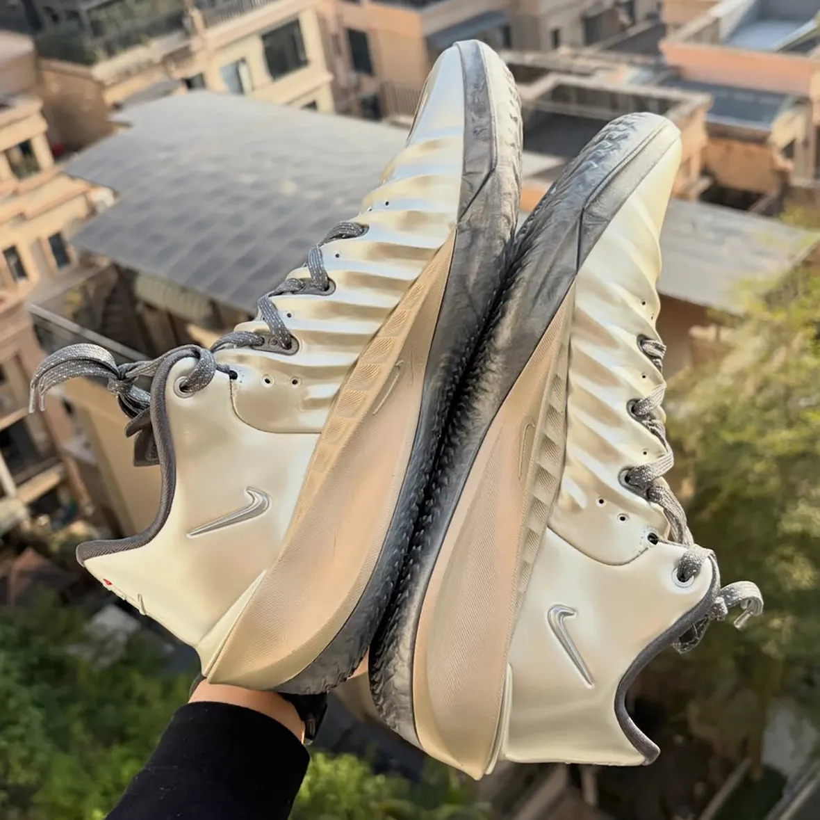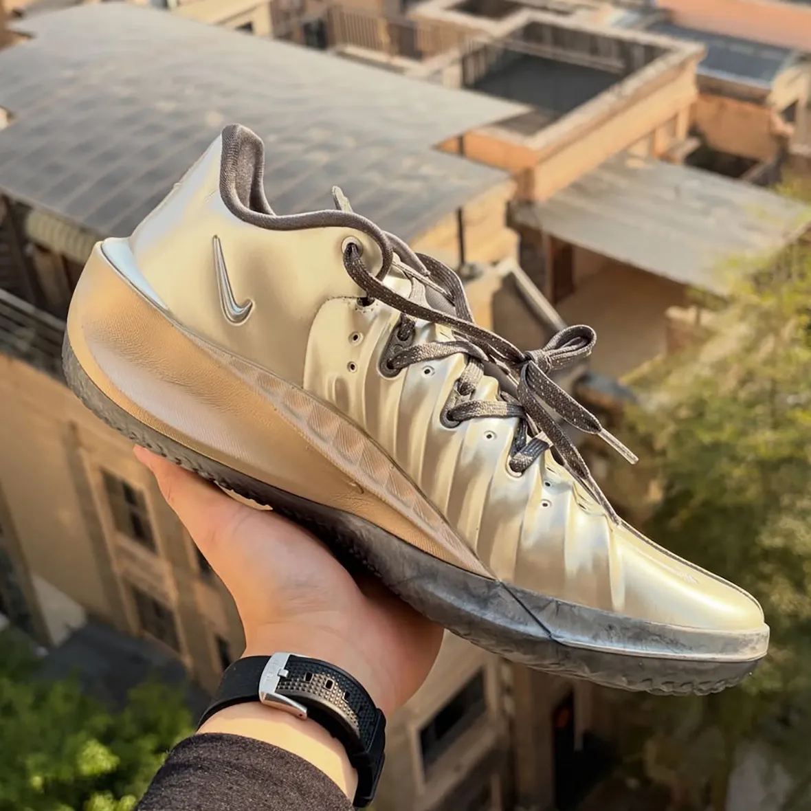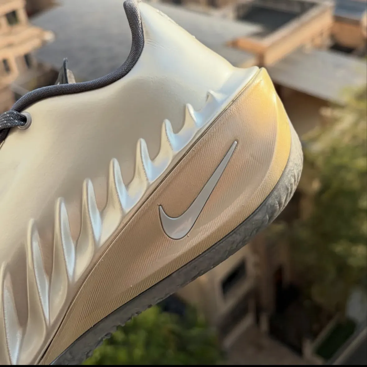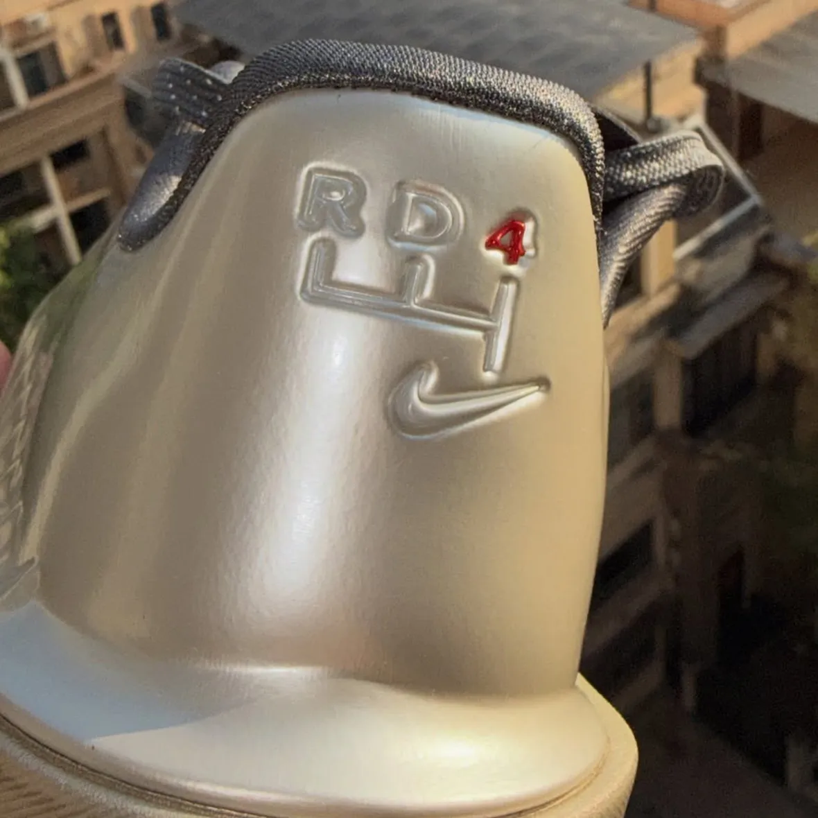 His Nike GT Cut 4 PE leans into a refined yet striking design. Metallic silver and gold tones dominate the upper, giving the shoe a polished look without losing its on-court edge. The color execution aligns with the GT Cut line’s recent direction, where bold finishes meet performance-driven construction. On the heel, the design gets personal. Dillingham’s “Rob With Da Shifts” branding appears through a gear-inspired logo that cleverly ties into his “RD4” nickname.
