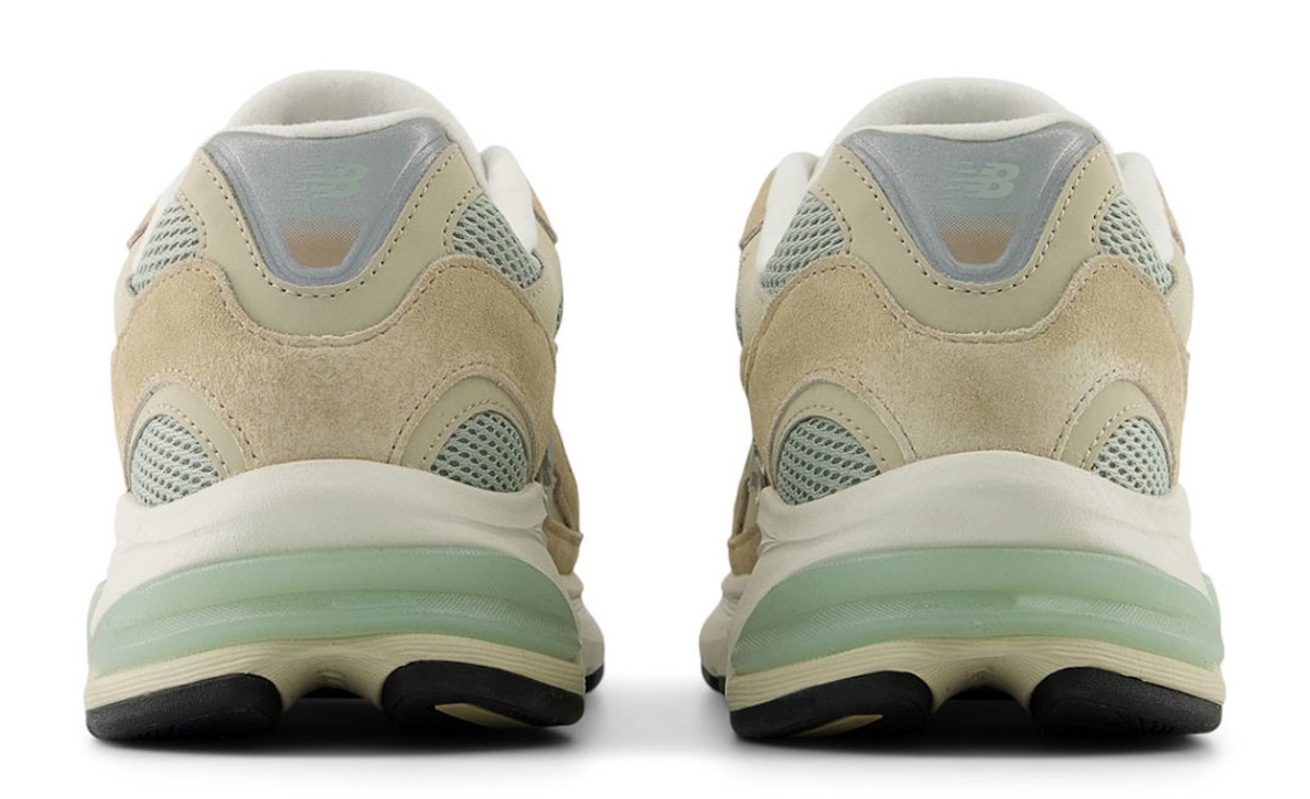 A light sage-colored mesh starts us off, providing a breathable canvas to the shoe upper and a contrast to the tan suede accents around it. Speaking of accents, those overlays have a brushed texture to them and run across the mudguard, eyestays, and heel tab in an organic pattern that doesn’t come off too rigid. Squished right in the middle, you’ll find a silver and grey midfoot “N” logo that’s wrapped with a desaturated tan trim.