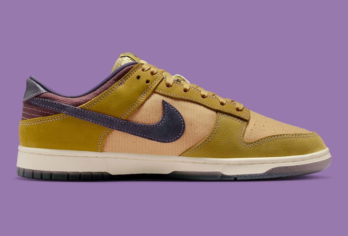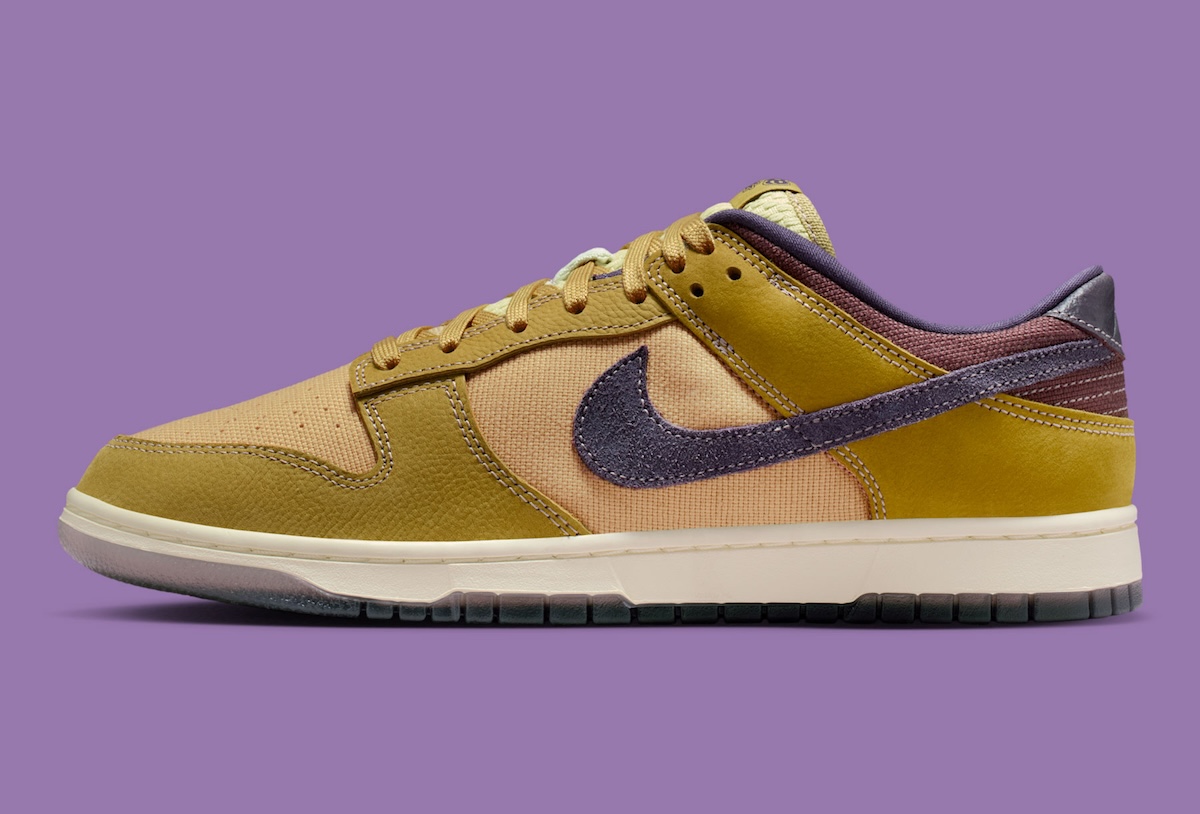 Textured builds continue to shape Nike’s lifestyle direction, and this Dunk Low fits right into that shift. The Nike Dunk Low “Light Gold” moves away from the usual all-leather setup and leans into a more layered feel.