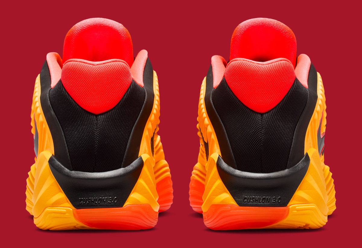 That tooling drives the design forward. A sculpted Laser Orange foam midsole features a wavy, layered build that reads as motion even at a standstill. Bright Crimson takes over along the outsole, producing a gradient effect that mirrors pressure zones and movement patterns underfoot.