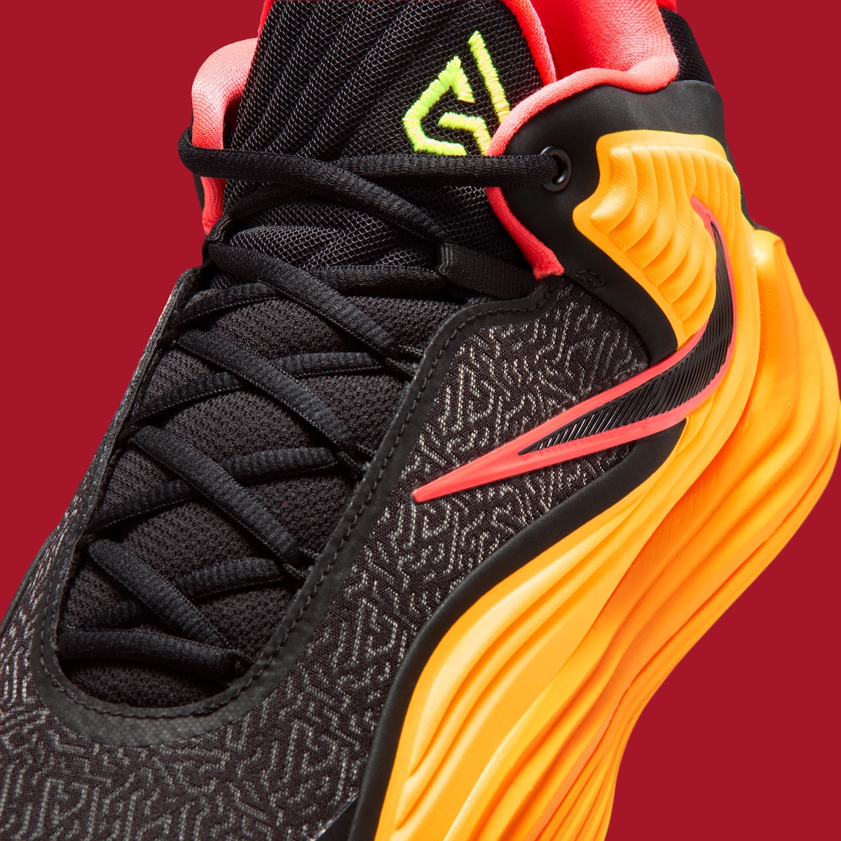 Underneath, a multi-directional traction setup uses organic, maze-like lines built for quick changes of direction. The layout reflects a continued focus on responsiveness and control within Giannis’ signature line.