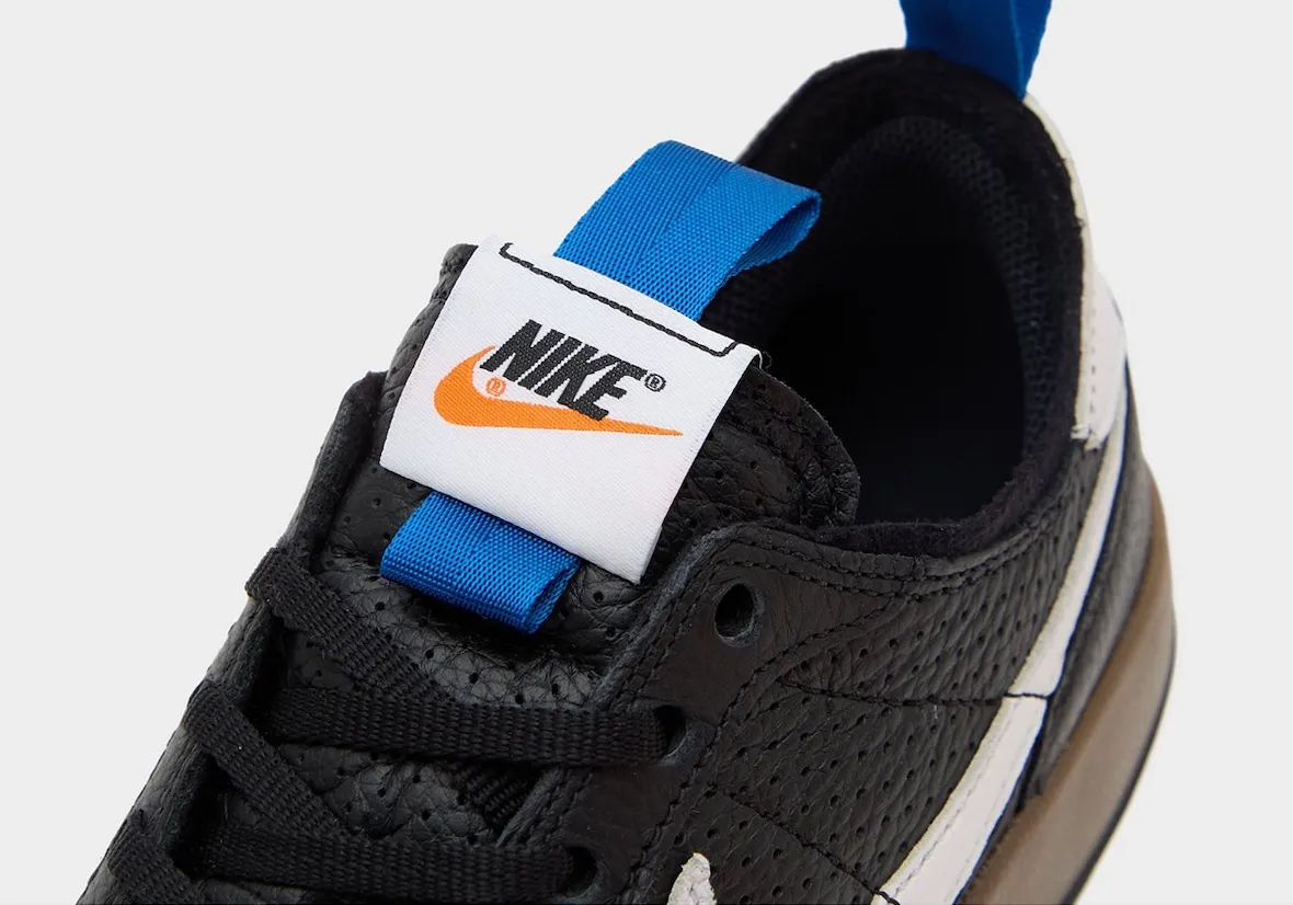 This upcoming version replaces the familiar knit and synthetic build with perforated leather, giving the silhouette a more structured and elevated feel. The upper arrives in black leather, contrasted by white hits on the Swoosh and heel tab. Small details bring balance, including Team Royal pull tabs that add subtle color, while a dark brown EVA midsole sits on top of a black waffle-style outsole.