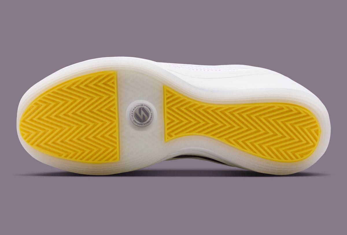 Yellow herringbone traction pods power house the outsole while boosting traction. Branding for Luka decorates the tongue while the inner sock-lining transitions to a deeper purple with yellow accents. Construction of the shoe still points to priorities around agility, stability, and feel.