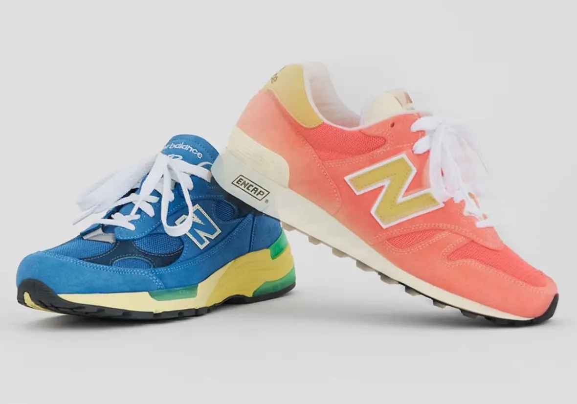 The remaining styles round out the season with more expressive options. A 993 “Passion Fruit” brings vibrant yellow accents, while additional 992 and 990v4 pairs tap into retro-inspired color blocking with purple, blue, and fiery multicolor finishes.