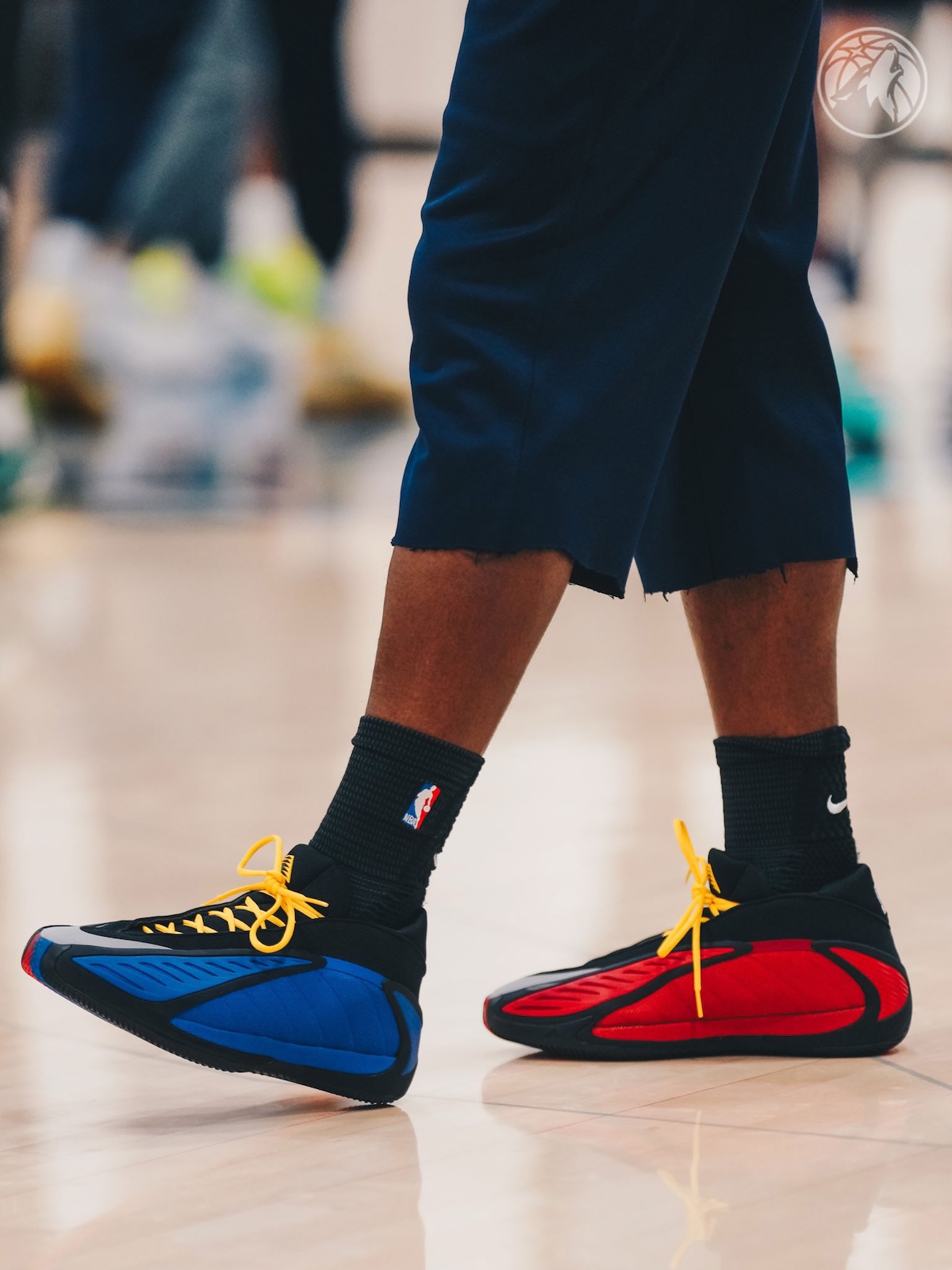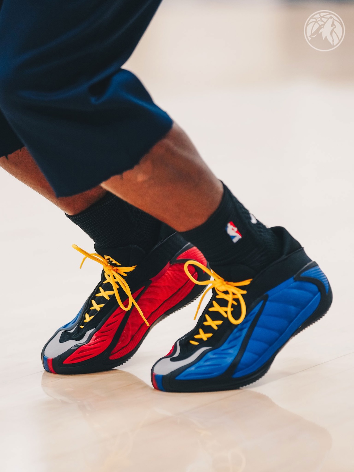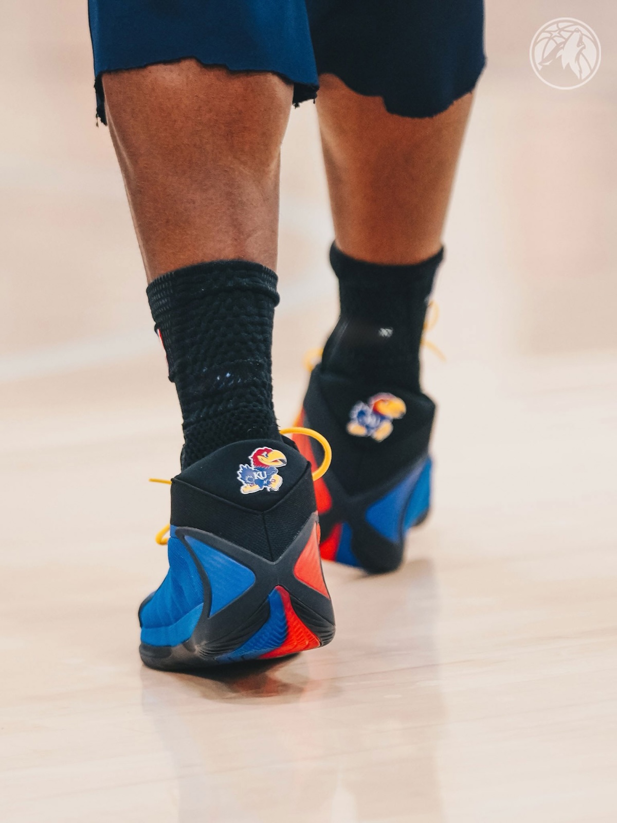 Built around team identity, the pair leans heavily into Kansas’ visual language. A Jayhawk logo lands on the heel, while bold blue and red split across the upper create a strong collegiate presence. Yellow laces add contrast, pulling from the bird’s beak and reinforcing the theme without overcomplicating the design.