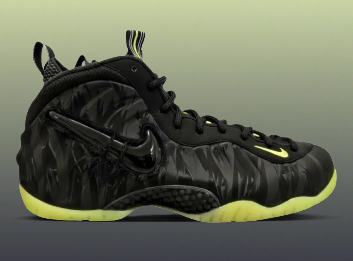 Early reports suggest the upcoming pair will swap the original white-based look for a “Black/Barely Volt-White” palette. While official images have not surfaced yet, the design is expected to stay true to the PE roots. That includes the signature wrapped Swoosh inspired by mummy bandages, textured striping across the Foamposite shell, and glow-in-the-dark elements that give the shoe a standout finish.