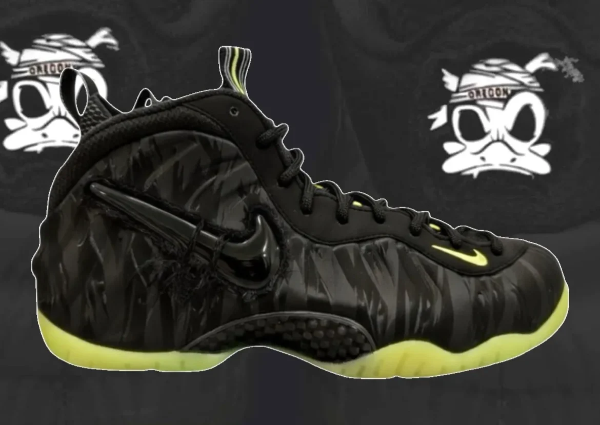 Early reports suggest the upcoming pair will swap the original white-based look for a “Black/Barely Volt-White” palette. While official images have not surfaced yet, the design is expected to stay true to the PE roots. That includes the signature wrapped Swoosh inspired by mummy bandages, textured striping across the Foamposite shell, and glow-in-the-dark elements that give the shoe a standout finish.