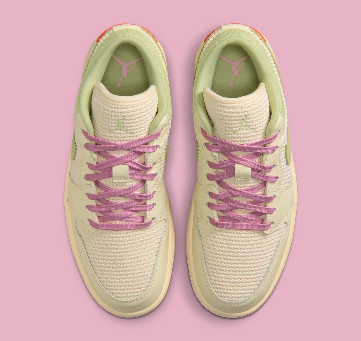 Attention moves to the Mid, where a crochet-style Swoosh introduces layered color through blue and green or orange and lavender variations. That detail adds contrast without overpowering the palette, hinting at a broader push toward material experimentation within the model.