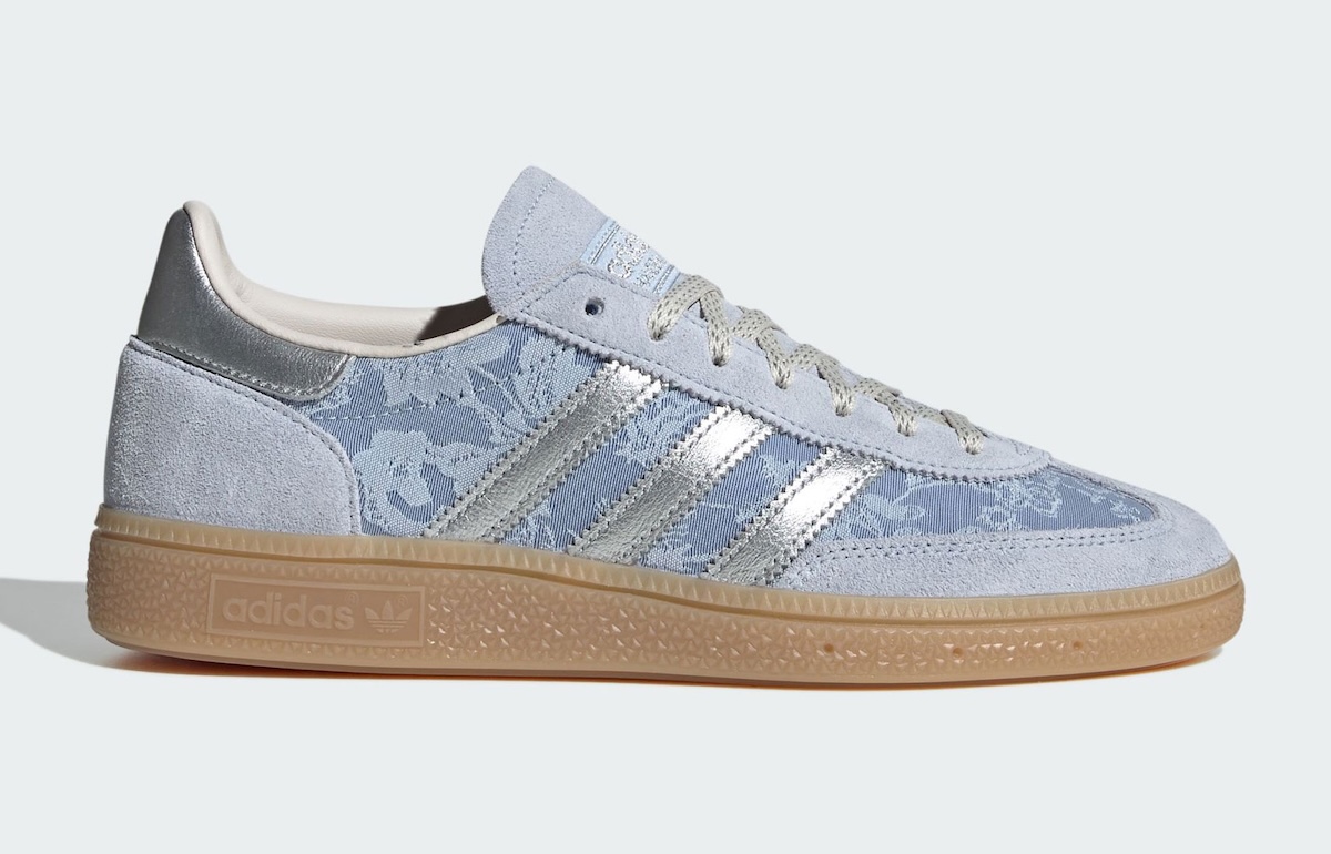 Consisting of two womenswear exclusives, the Pack sees the release of the Handball Spezial and Sambae. Available in light blue, silver and cream hues, both silhouettes are defined by their traditional gum soles. Patterned jacquard adorns the side panels of both pairs, showcasing collaborative floral motifs translated across each silhouette reminiscent of hand painted glazed Delftware.