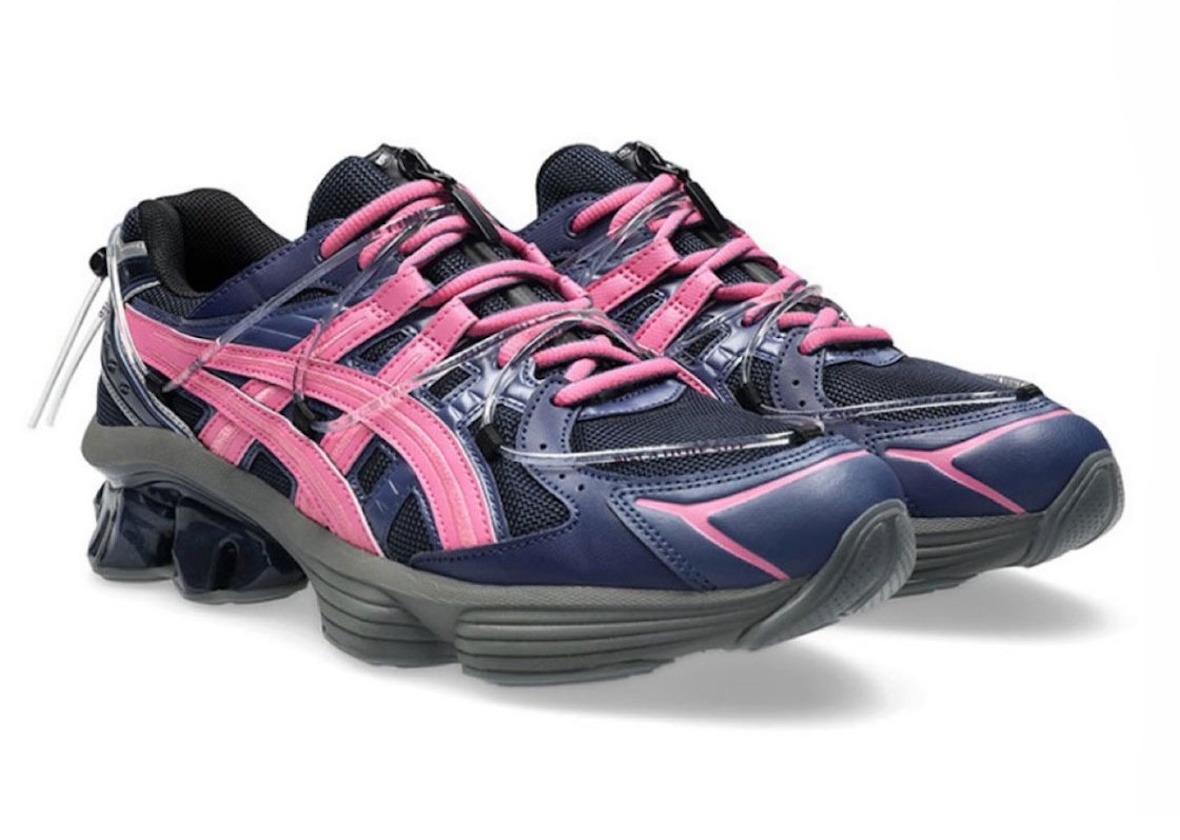 One detail immediately sets the design apart. Clear tubing stretches from the heel toward the forefoot, giving the silhouette a slightly futuristic feel. Longtime ASICS fans may notice a faint connection to the rarely discussed GEL-MAI, though the overall look still feels modern. The lineup includes three colorways—black, silver, and a brighter purple-and-pink combination.