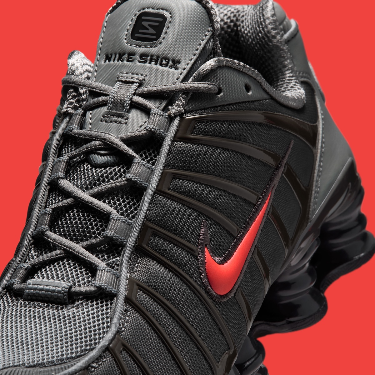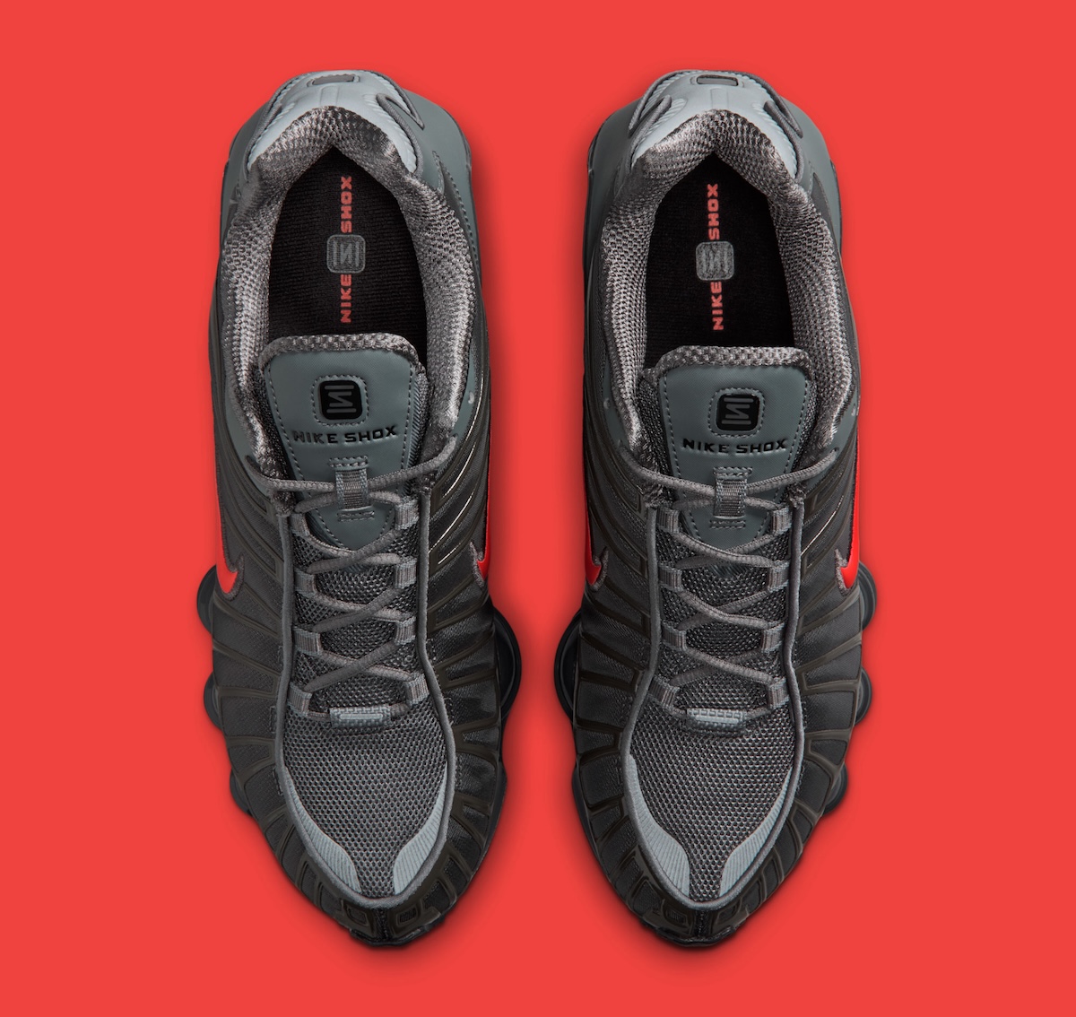 The Nike Shox TL SE “Smoke Grey/Bright Crimson” releases April 1, 2026 for $180 via Nike.com.
