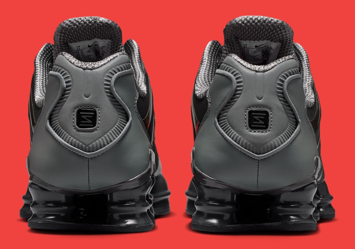 Down below, black Shox columns run the full length of the sole. The setup looks bold and still delivers that signature bounce. A rugged outsole and midfoot plate help keep everything stable.