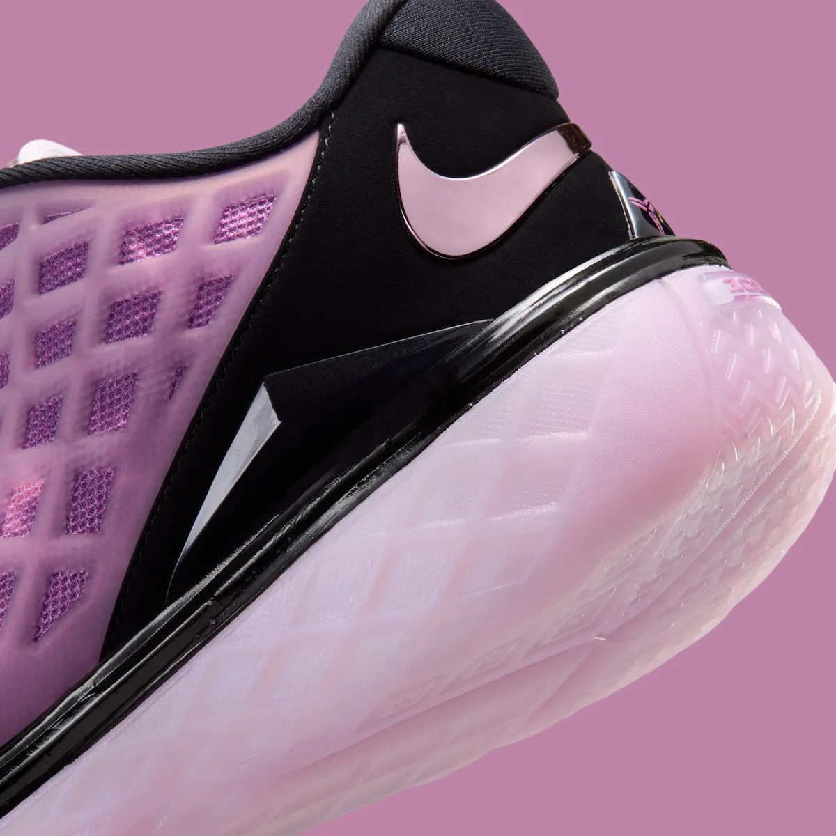 Design inspiration traces back to Kobe’s first three seasons in the NBA. During that time, his explosive style of play quickly turned heads around the league. Off the court, the exterior of the Forum arena often glowed pink at night, creating a visual moment tied closely to that era of Lakers basketball.