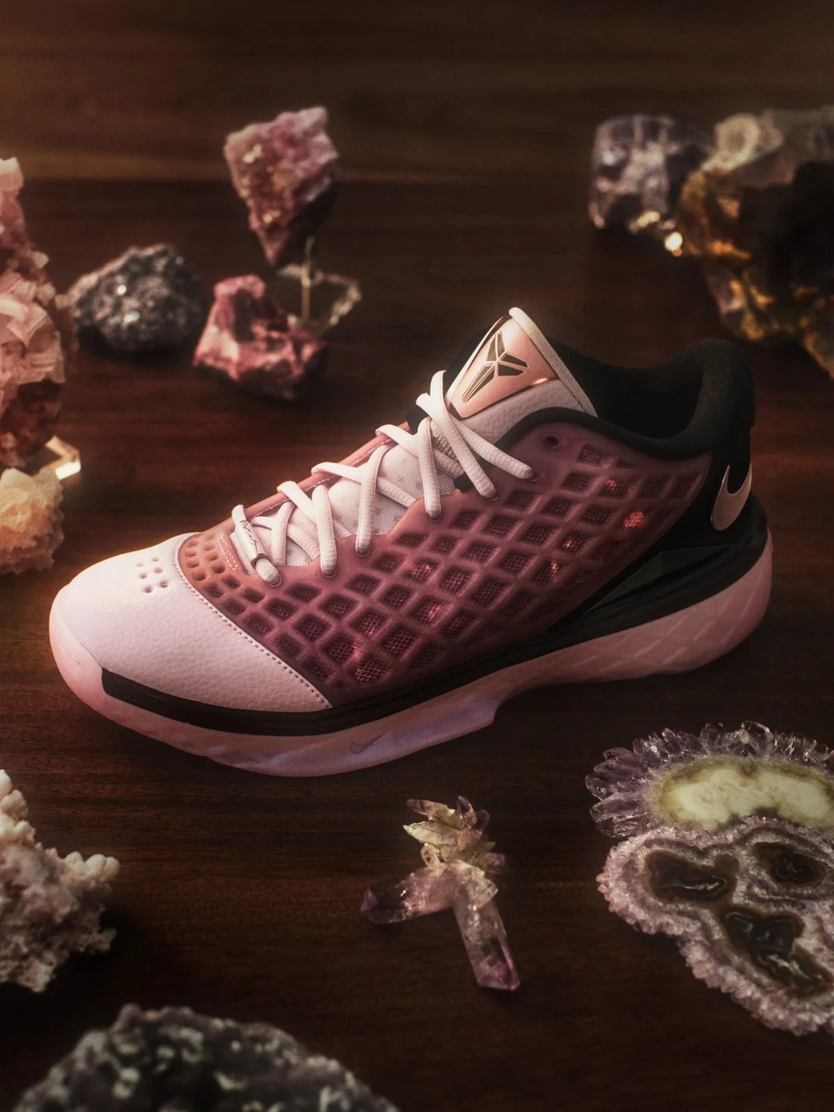 The Kobe 3 Low Protro “Pink Quartz” channels that atmosphere through its design. Soft pink tones cover the quilted upper, referencing the arena’s nighttime lighting, while darker accents around the heel and midfoot add contrast and structure. The balance of light and dark details mirrors the mix of energy and focus that defined Kobe’s early development.