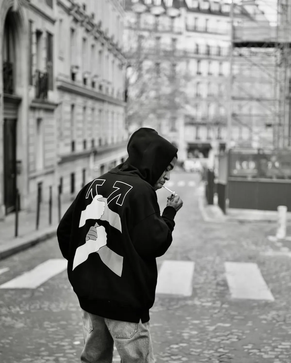 Cudi unveiled the collaboration while moving through the streets of Paris during Fashion Week, casually modeling the pieces in everyday settings around the city. The rollout offered a relaxed introduction to the project while highlighting Off-White’s continued connection to culture and music.