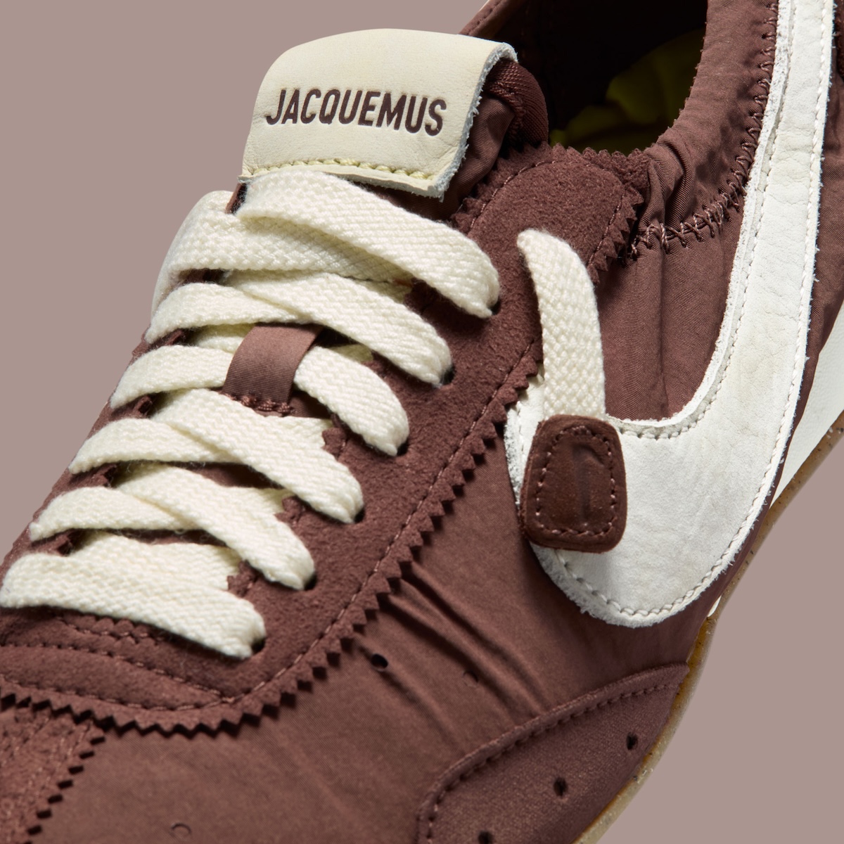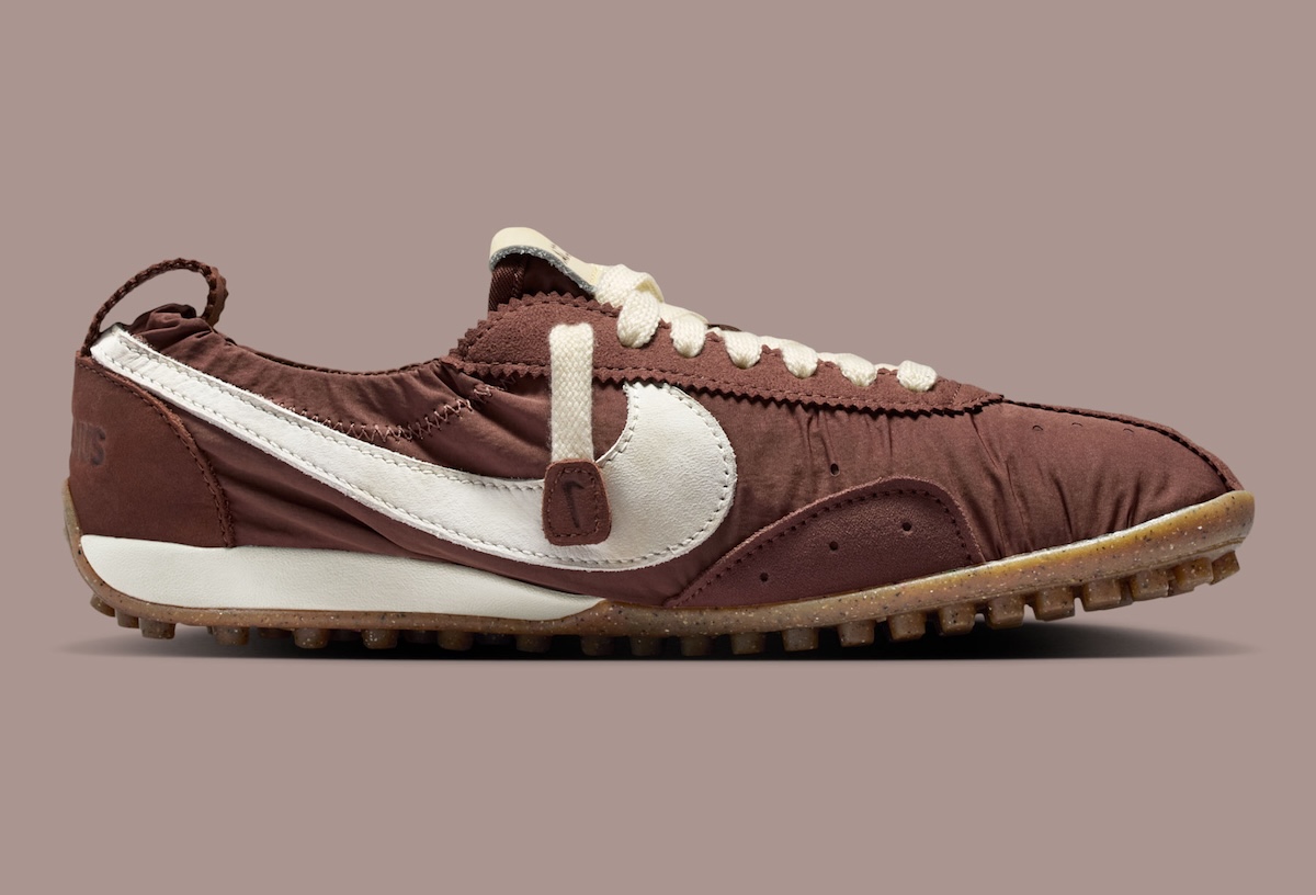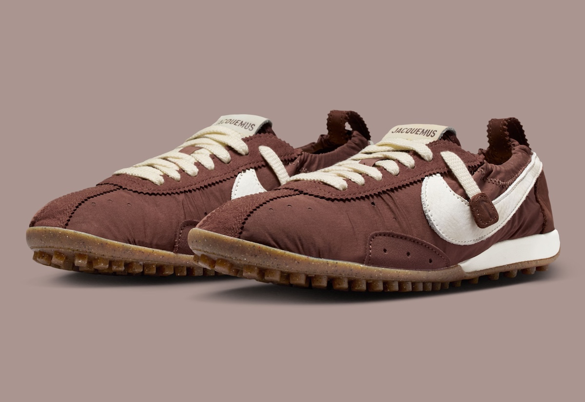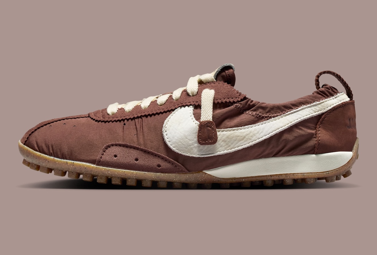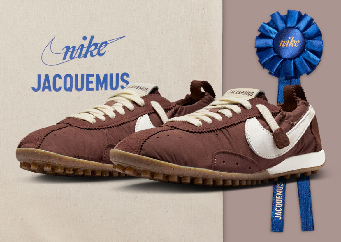 That direction leads to the Jacquemus x Nike Moon Shoe “Fauna Brown”, a new interpretation of the vintage runner that helped define Nike’s early identity.