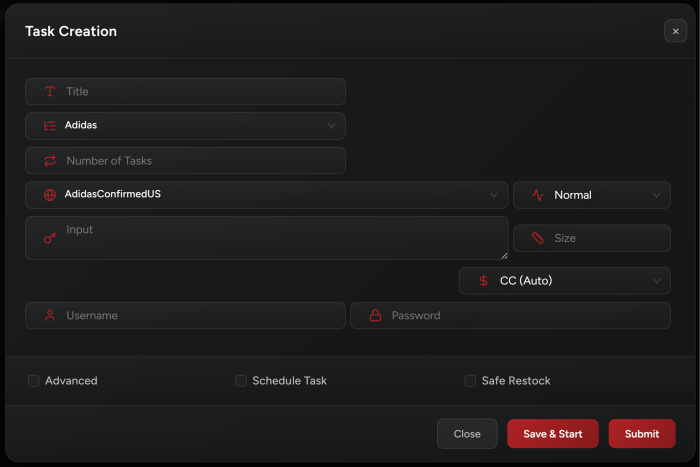 Then go to your Tasks tab to create your Adidas tasks and make sure to enter the item PID in the