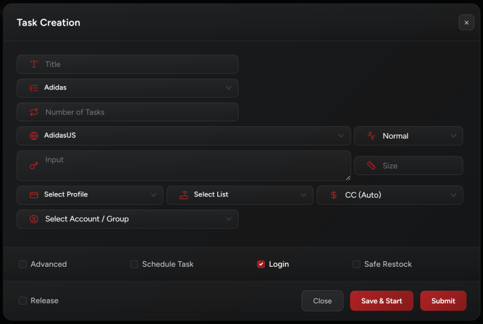 NSB supports more than 30 Adidas regions with different modes and options that you can use when creating an Adidas task!