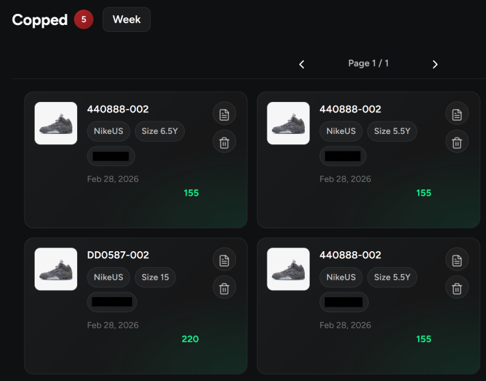 Check your copped sneakers in this tab and share your success!