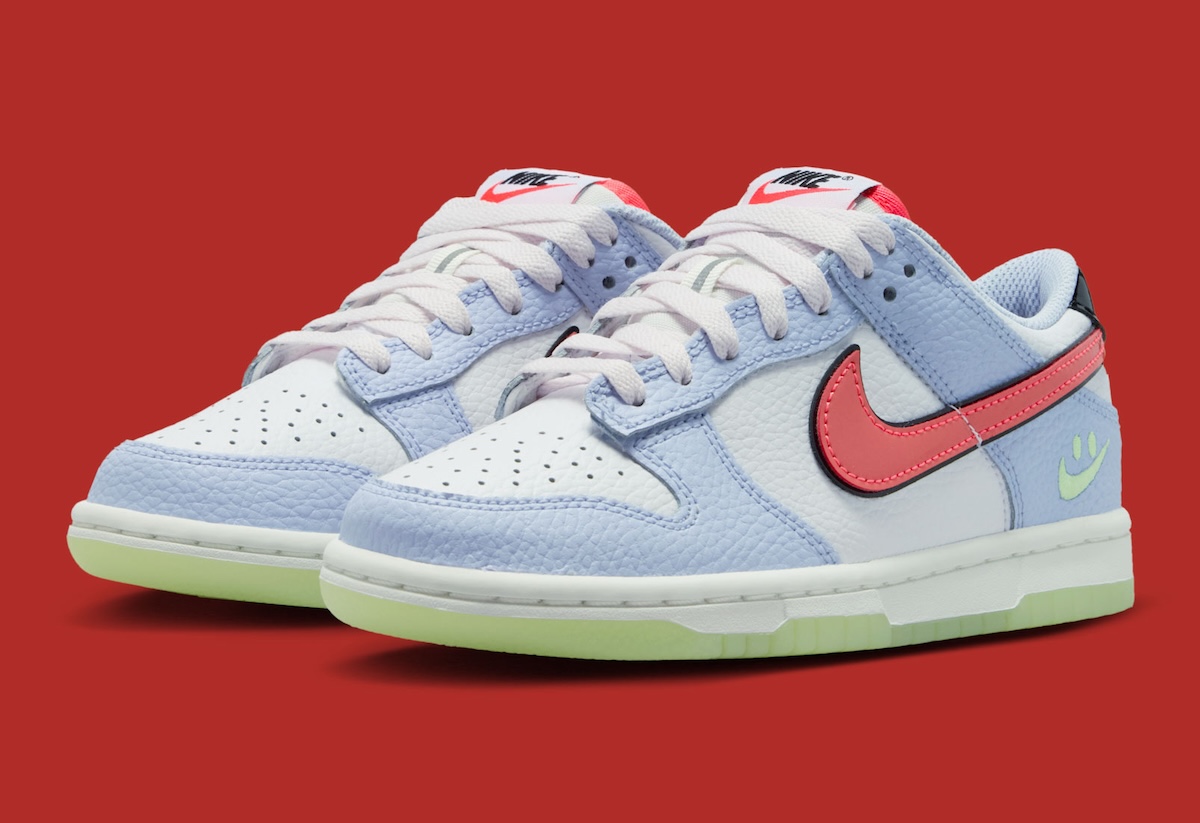 Bright, easygoing colorways tend to surface once warmer weather gets closer, and Nike’s next Dunk follows that familiar pattern. Built in grade school sizing, the Nike Dunk Low GS “Smiley Swoosh” brings a playful spin to the classic basketball silhouette while keeping the overall design simple and wearable.