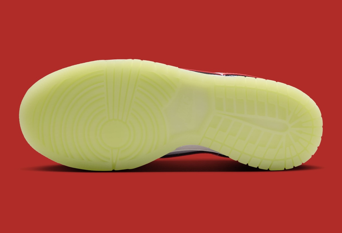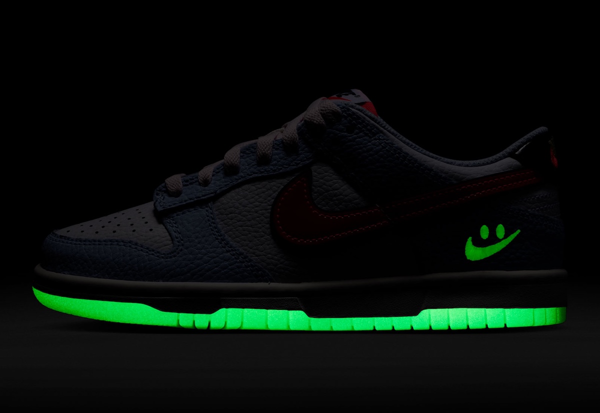 The bottom half of the classic Dunk formula remains untouched. A white midsole helps to even everything out while the outsole is treated with a glow-in-the-dark varnish that will pop when the lights are off.