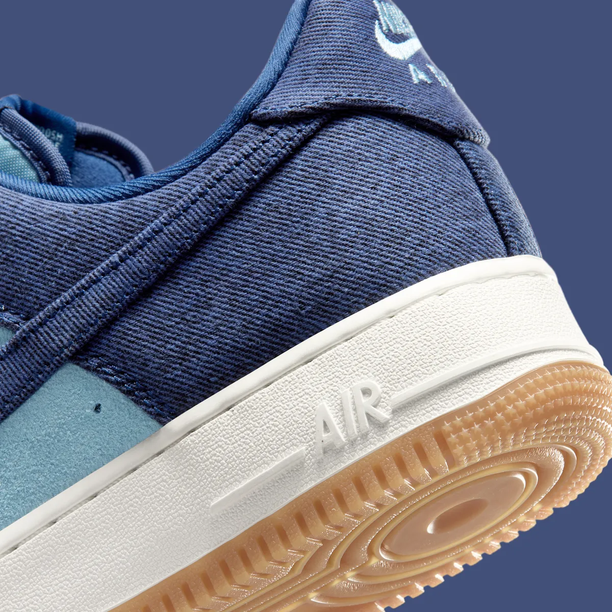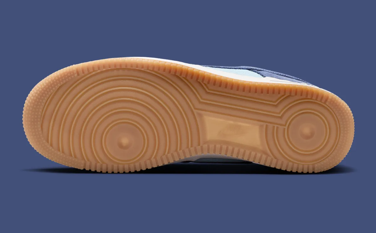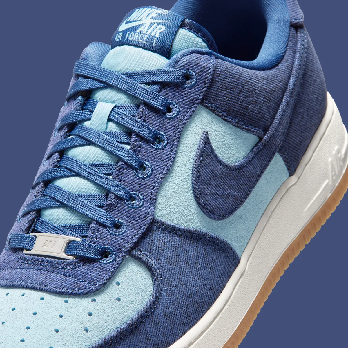 This pair leans into durable materials, featuring navy canvas overlays layered over a soft Worn Blue suede base. A silver lace dubrae keeps the classic AF1 DNA intact, while the design is finished with a white midsole and Gum Light Brown outsole for a balanced, everyday look.